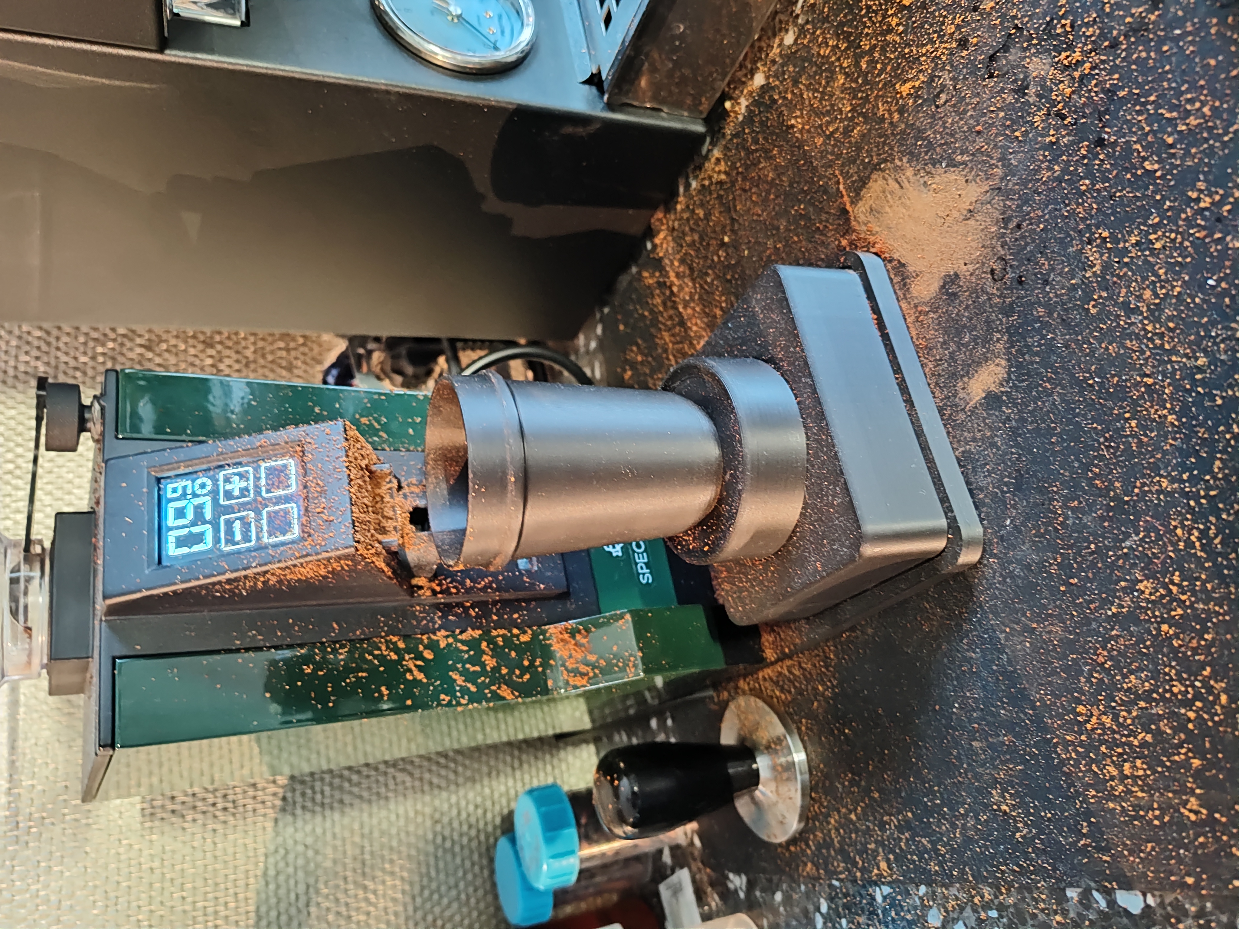 Normaliter houd ik mijn koffie station behoorlijk schoon maar na de eerste keer malen met deze nieuwe bonen zag het eruit alsof de maler spontaan last had gekregen van diaree. Alles zat onder het koffiemaalsel.