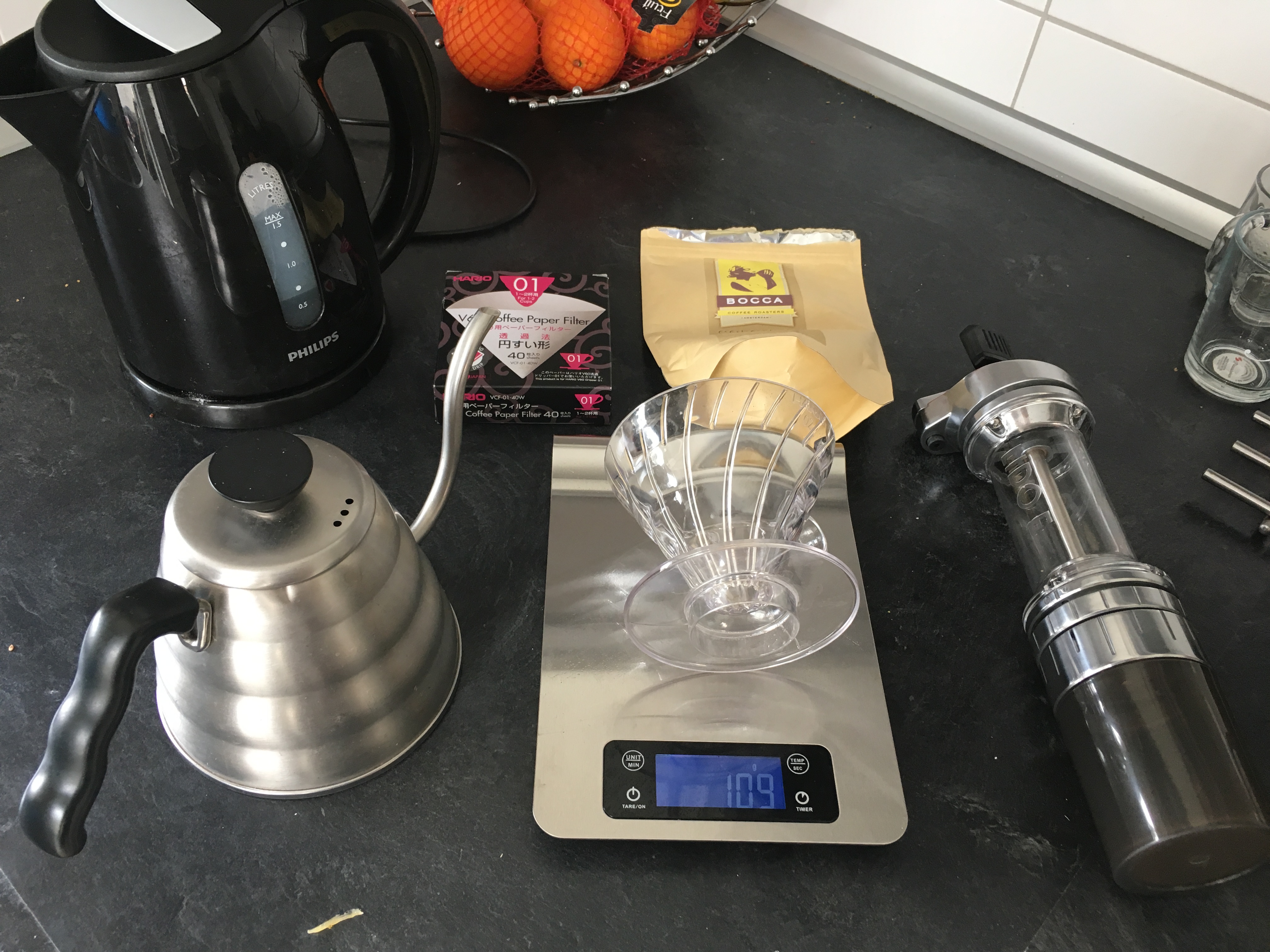 Ik schenk het water op met een hario kettle die ik via marktplaats heb gekocht sinds kort op de volgende manier (video als het goed is toegevoegd aan het eind van dit bericht);