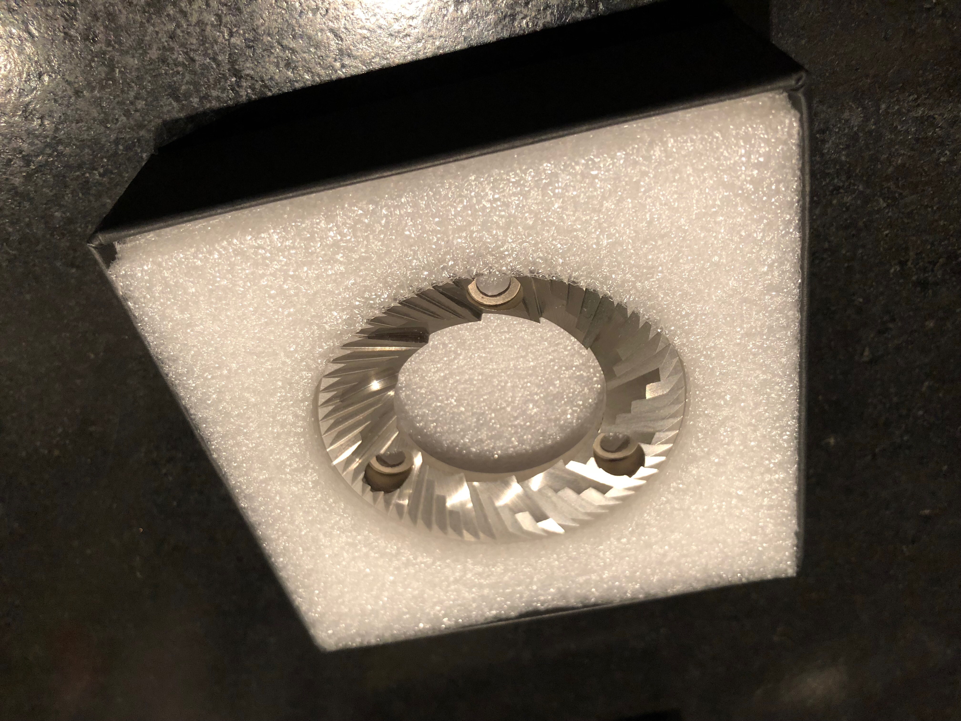 Ik heb ze zojuist direct in de Mini geplaatst. Ongelofelijk hoeveel verschil in snelheid. Waar ik met de standaard schijven 21 seconden voor 17gr nodig had is dat nu 7.5 seconden. En dan is de maalgraad nog ietsje te fijn.