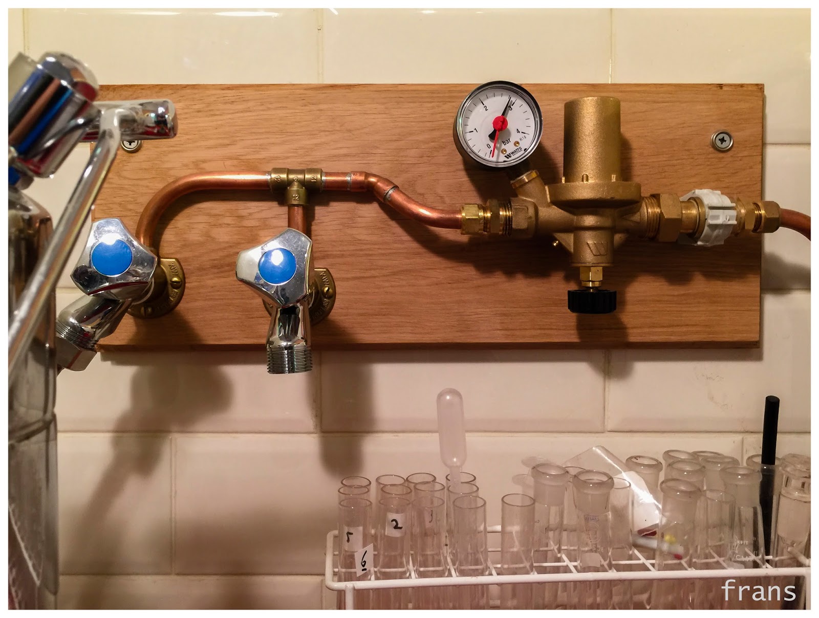 6Een collega-espressoliefhebber en -koffiebrander hier om de hoek heeft destijds dit paneel voor me gemaakt inclusief het ding waarmee ik flow en druk kan verminderen: