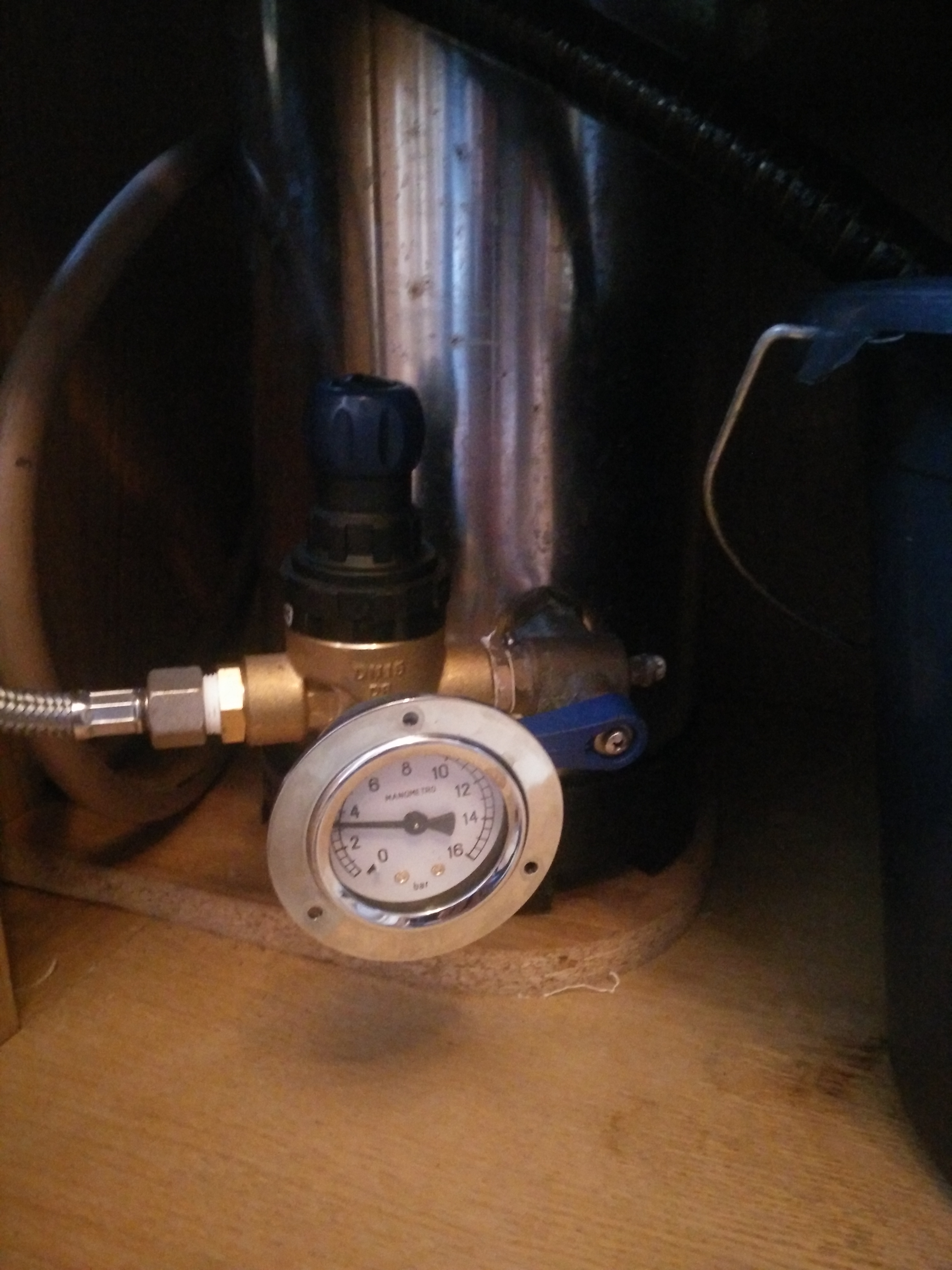 Mijn machine staat op de begane grond, en er komt een behoorlijk stevige waterstraal uit de LT8. Ik kan me daarom niet voorstellen dat een extra pomp nodig zou zijn. Dus de optie van het reduceerventiel klinkt mij de meest plausibele eerste stap om mee te beginnen. Paar vragen: