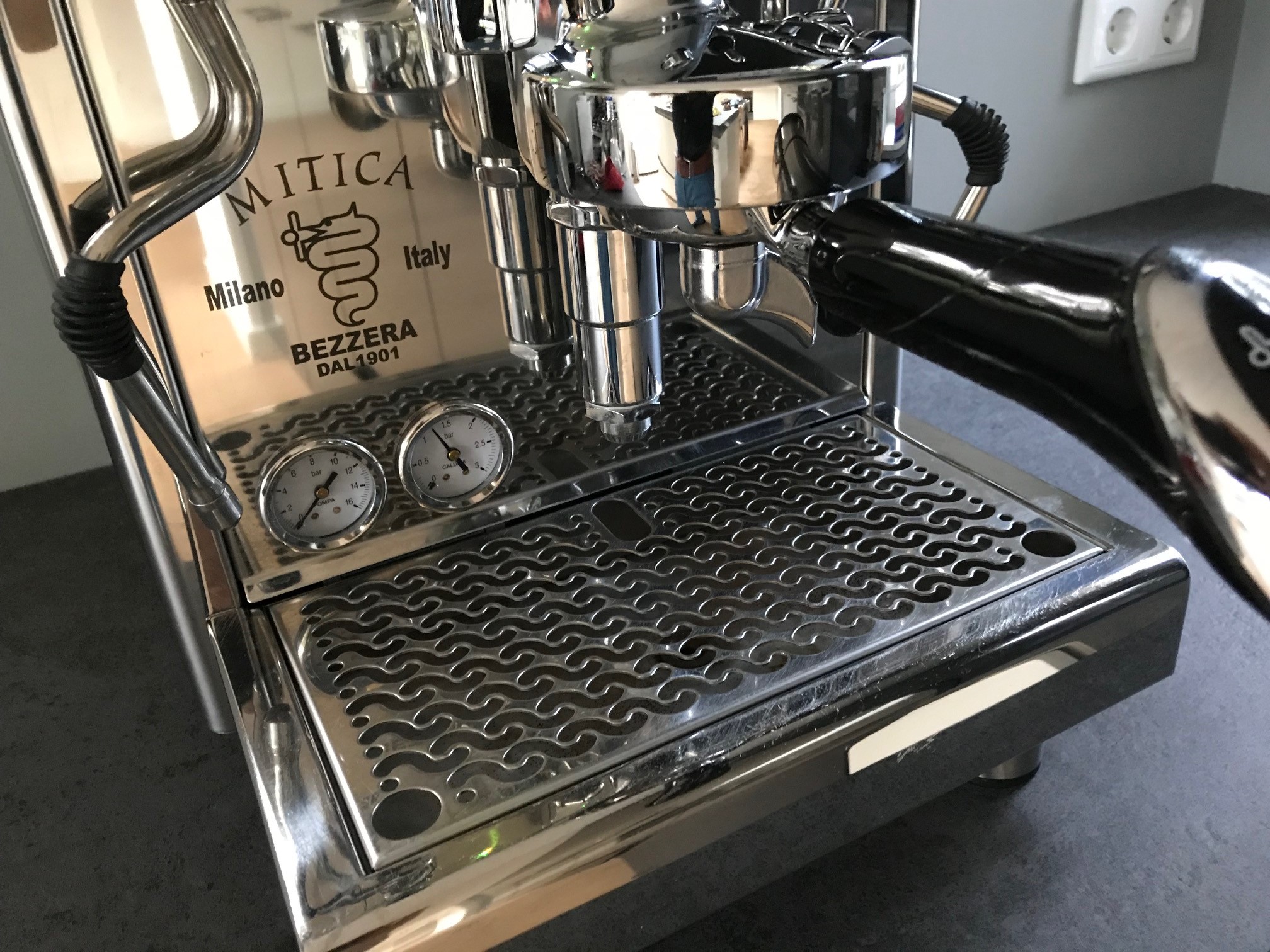 De OPV is terug gezet naar 9bar voor wat minder druk. De OPV is ook gesmeerd, dus heeft niet meer het Bezzera kwaaltje van het fluitende geluid.