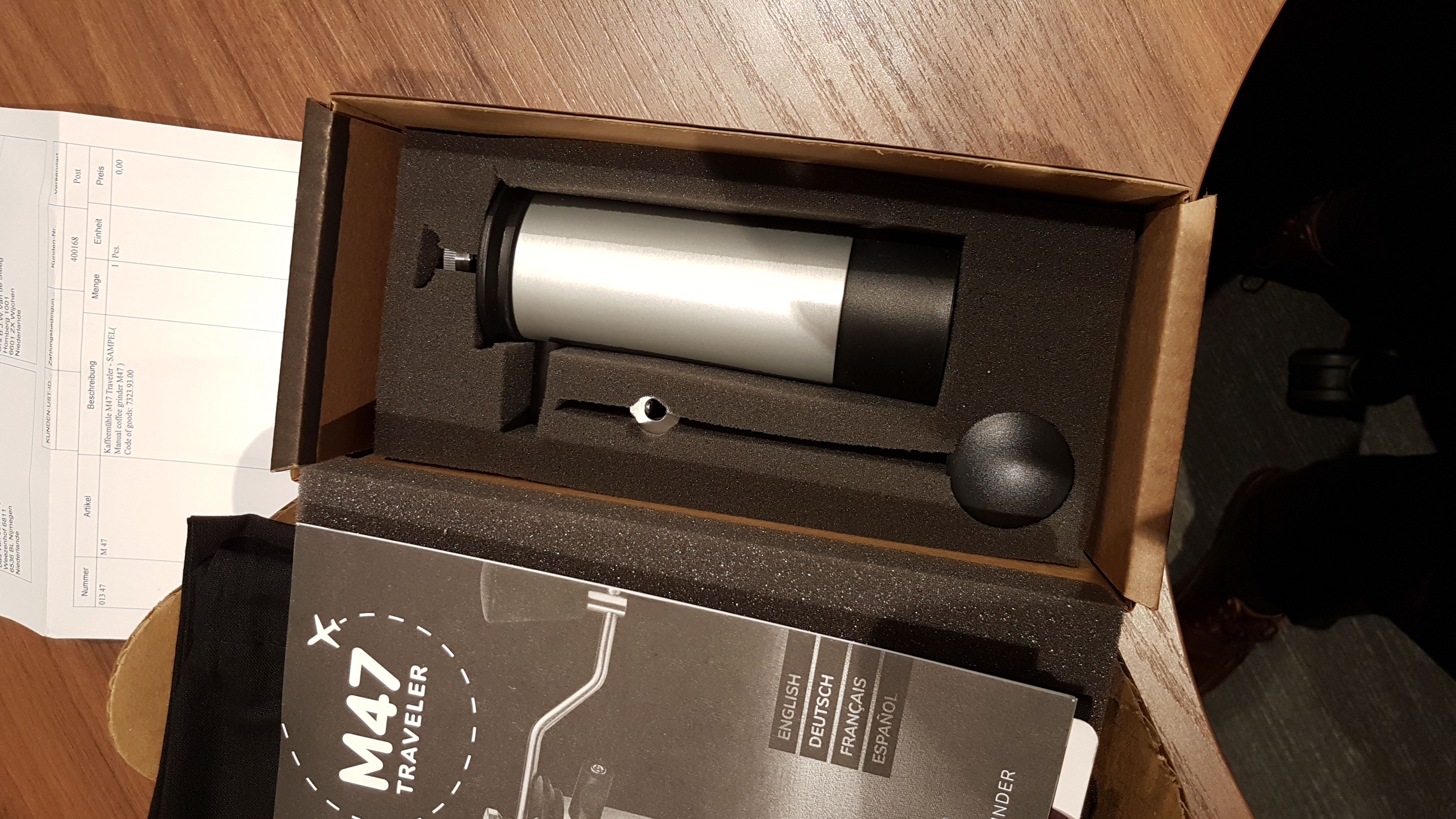 Ik kan de bevindingen van Bob alleen maar onderschrijven. Het is echt een kleine afgeslankte M47. De Traveler is veel lichter en handzamer dan zijn grote broer. Desondanks komt het malertje op het plastic opvangbakje na stevig over. Ongelofelijk hoe klein de Traveler eigenlijk is als je bedenkt dat het binnenwerk gelijk is aan zijn grote broer. Dezelfde 47 mm Italmill schijven met black coating, dezelfde maalgraadverstelling en net zo goed uitgelijnd.