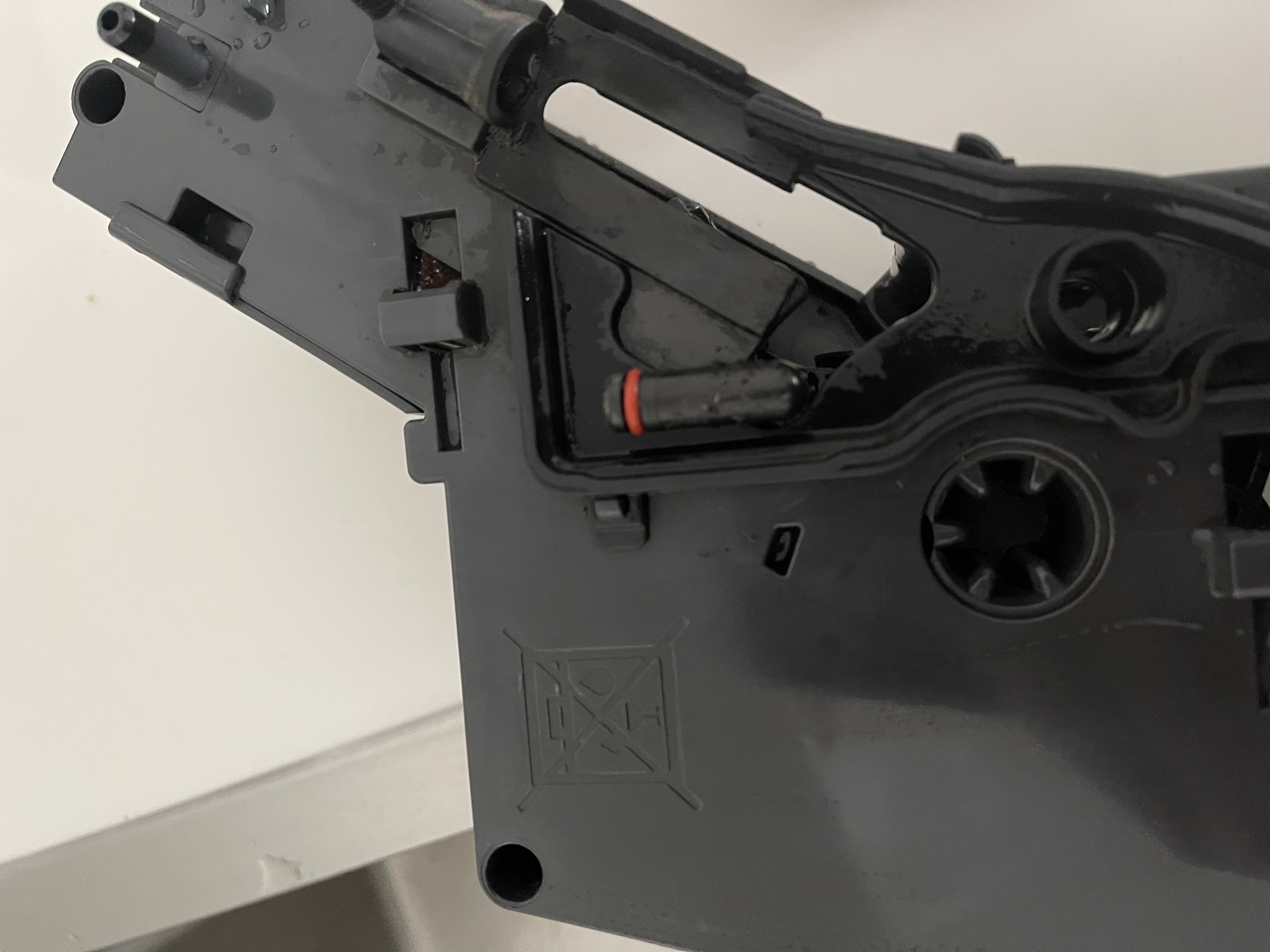 Nou zag ik ineens tot mijn verbazing dat er aan de achterkant van de zetgroep een rood rubberen ringetje ontbrak. Deze heb ik vervangen voor een paar euro en het probleem was opgelost.