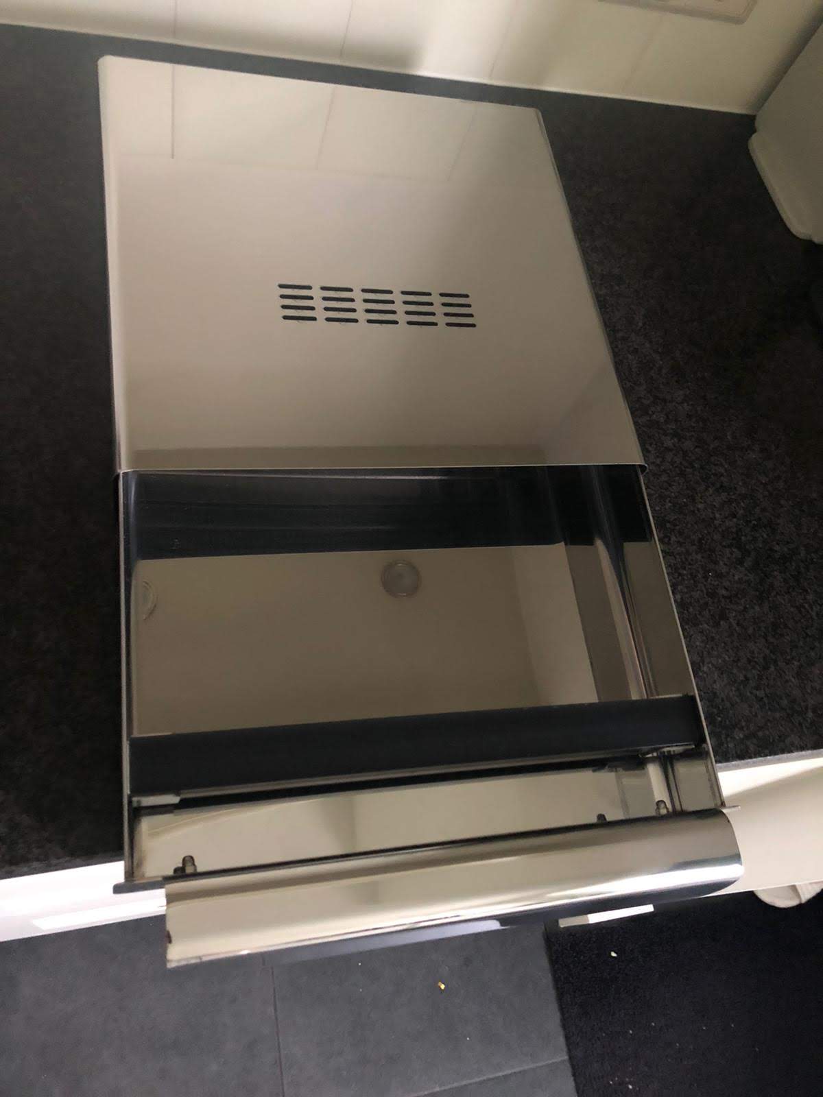 Eén op één onderstaande tekst overgenomen van koffiewarenhuis, alwaar mijn aangetrouwde tante een nieuwe QM3035 eerder deze maand kocht. Ze vindt deze meegeleverde lade te log, groot, onhandig, voor een één-persoonshuishouden. De lade mag t.e.a.b. weg, de nieuwwaarde is 148 euro.
