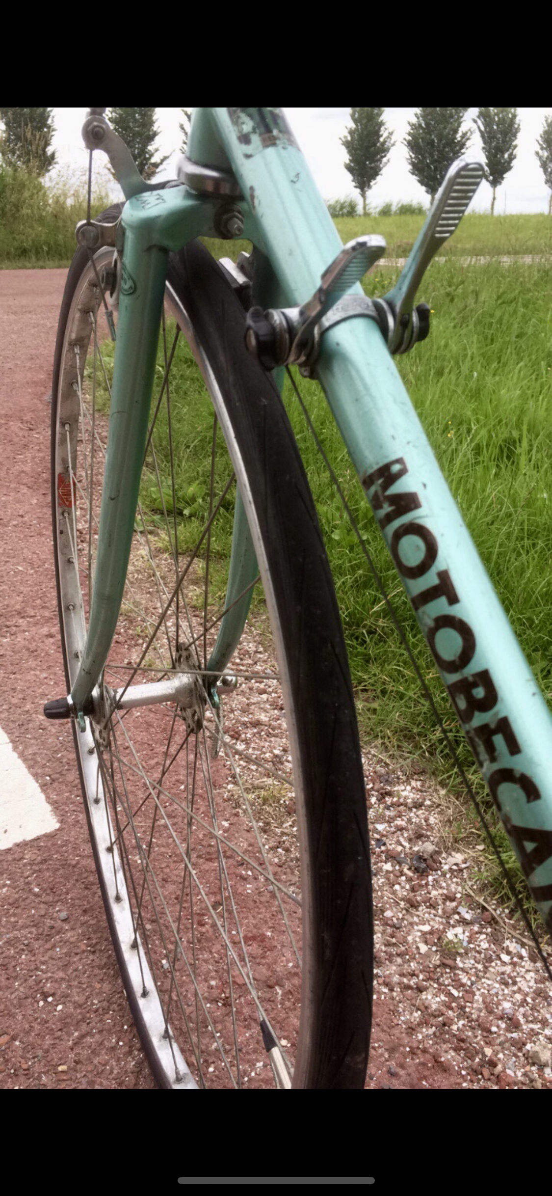Heb een andere racefiets gehad nog, knap ding. Mij te modern. Stapte af en toe op mn motobecane met recht stuurtje en dat ding zit kij gewoon als gegoten. Heerlijk stijf frame ook ondanks zn leeftijd (1980 heb ik me laten vertellen)