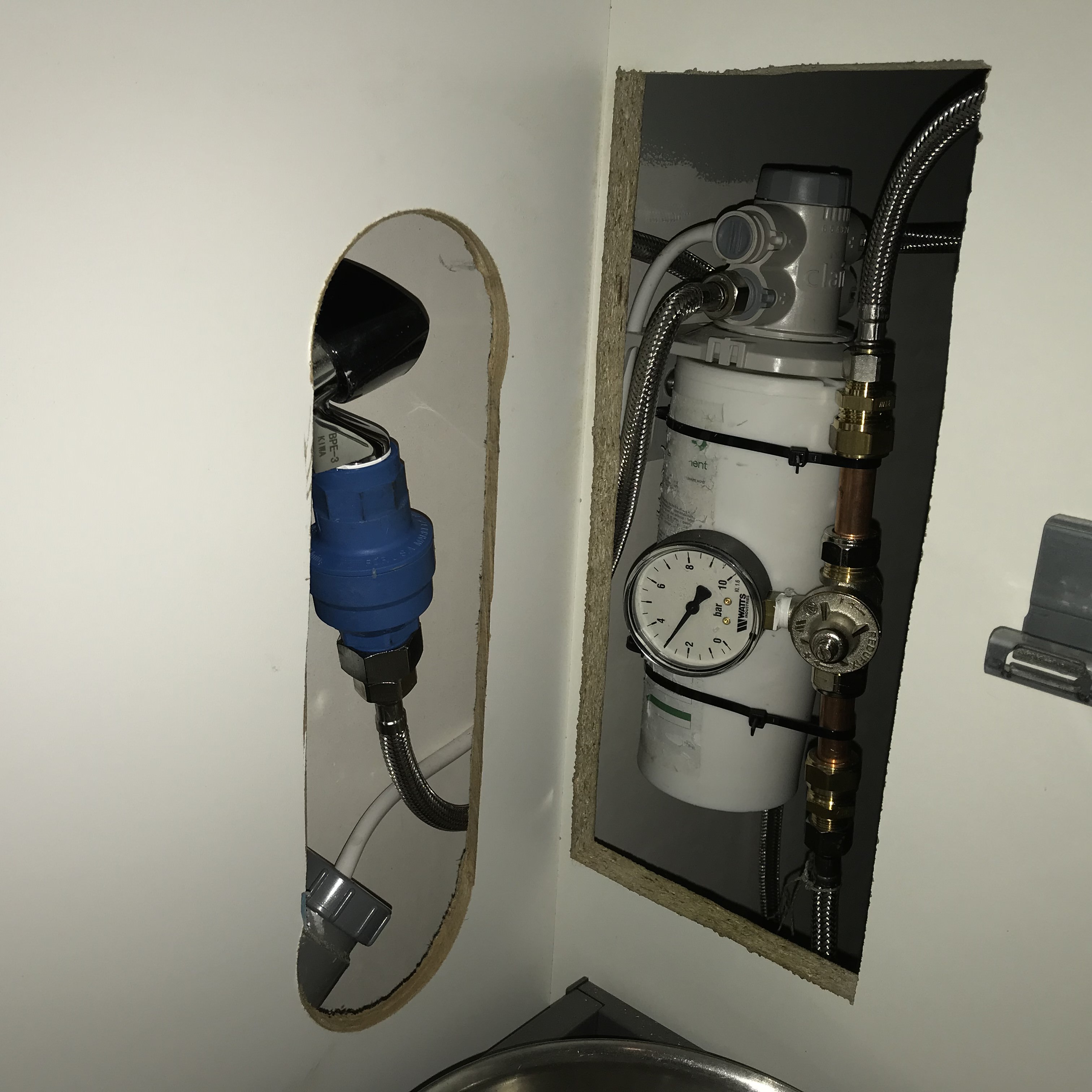Wat betreft de pomp, mijn machine heeft een externe pomp net als veel horeca machines dus die moet je toch ergens kwijt. Dan het liefst op een plaats waar hij geen ruimte "in beslag" neemt. Als hij niet onder het kastje had gepast had ik hem waarschijnlijk tegen de achterwand geschroefd.