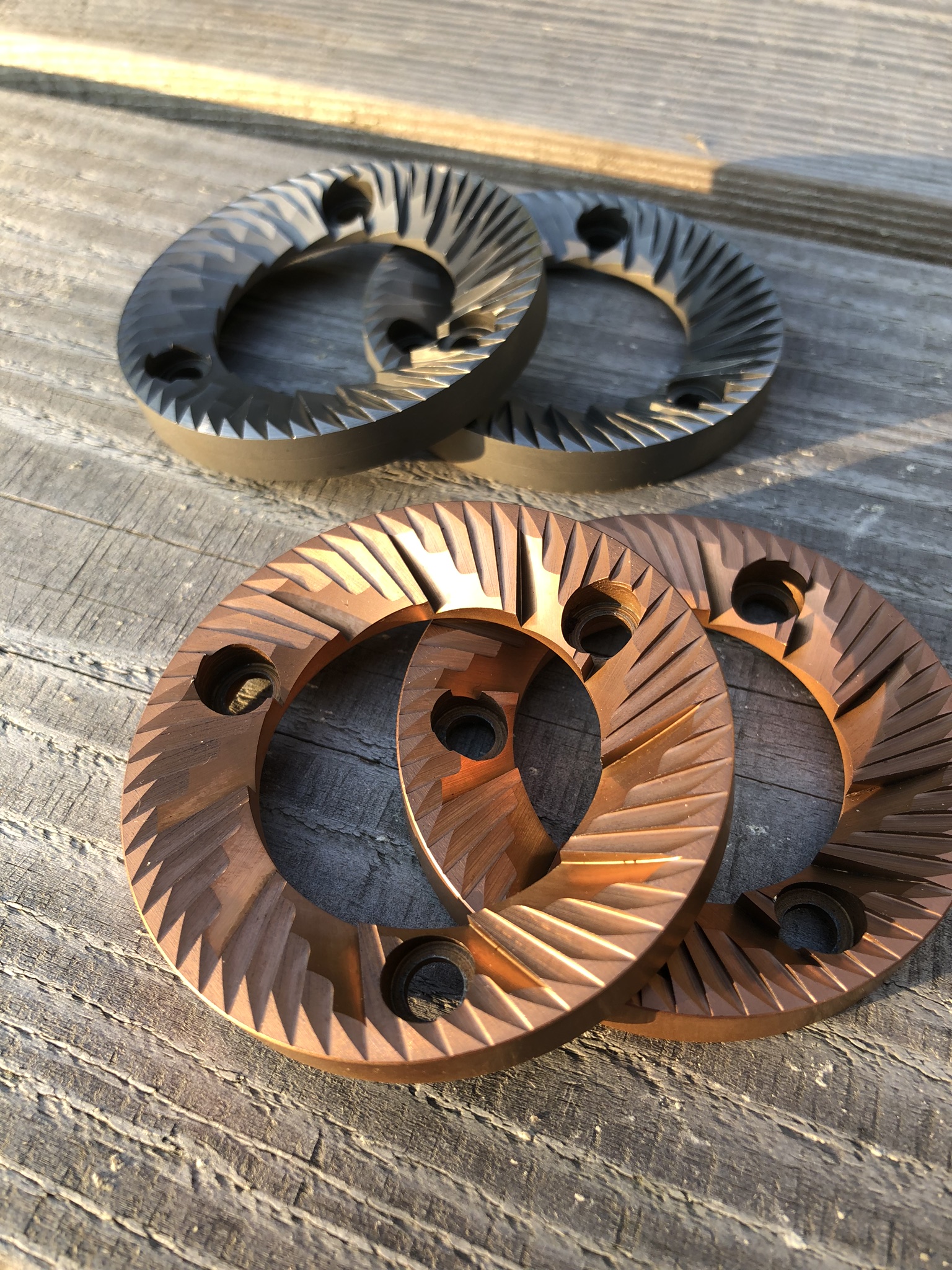 Hier zie je de espresso en multi-purpose d.w.z. unimodale burrs naast elkaar: