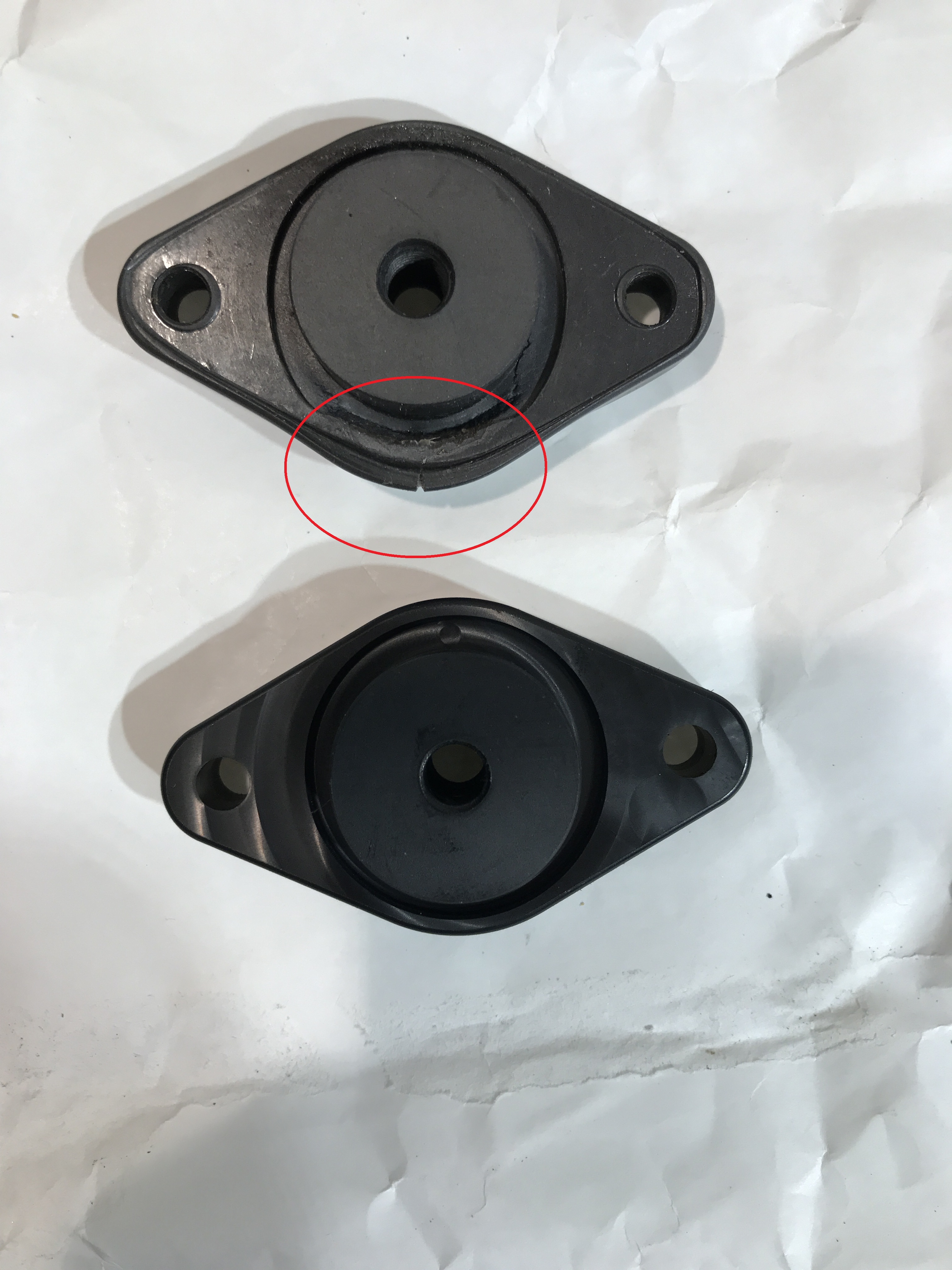 De oude Bong isolator begon aan de onderkant te vervormen en daarna ontstond een scheurtje, zie foto's.