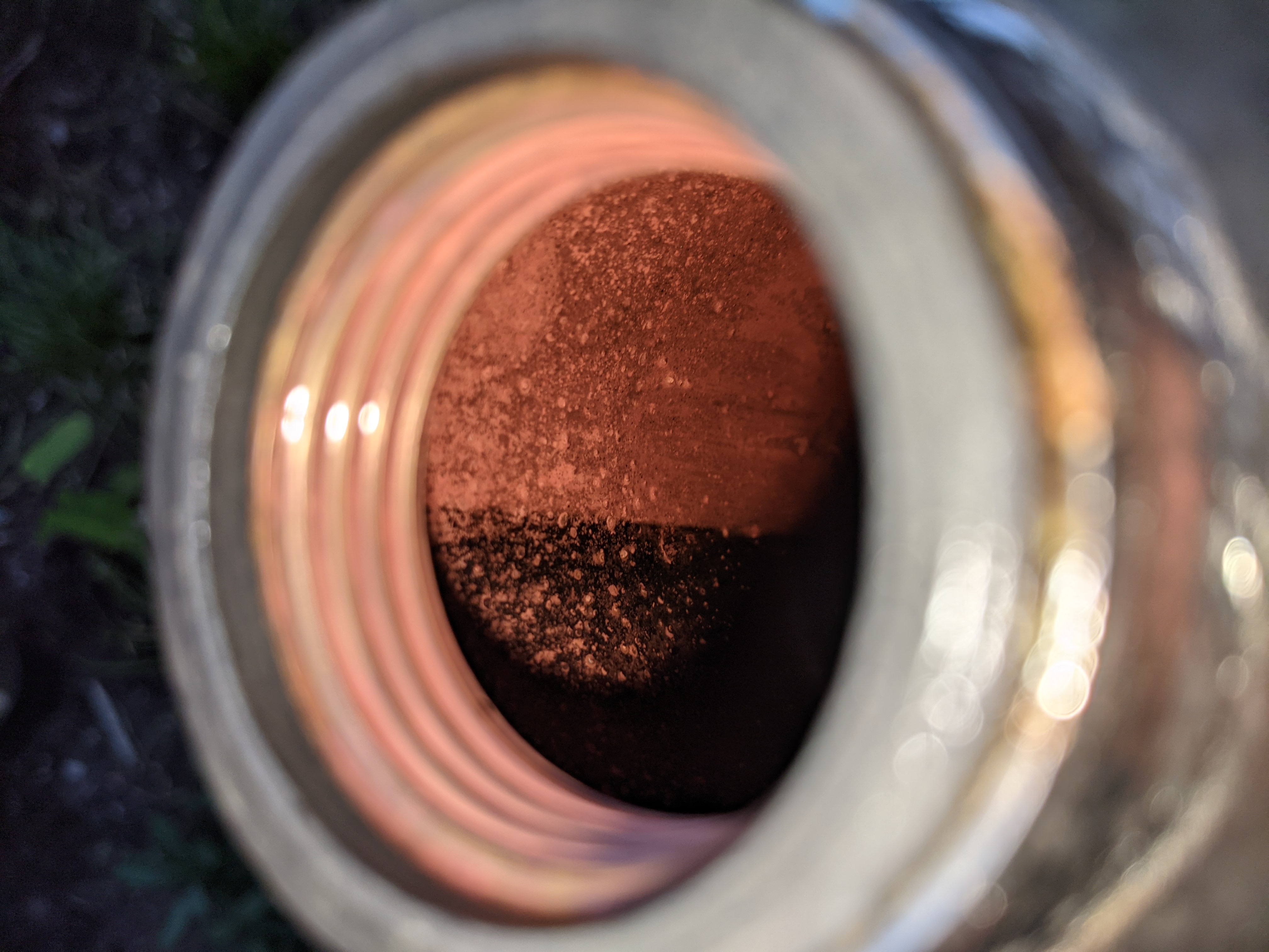 De boiler zelf lijkt wat kalk kwijt te zijn, maar de binnenkant voelt nog erg ruw en ziet nog zwart. Ik denk dat deze nog wat meer tijd nodig heeft.
