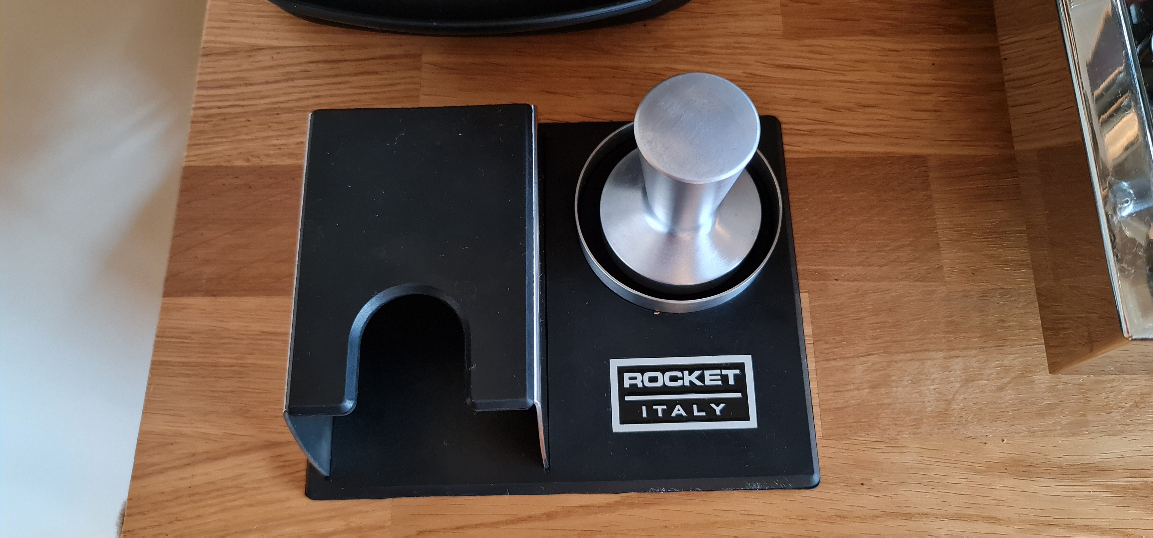 Daarnaast krijg je een originele Rocket tamper met Rocket tamp mat en holder en schoonmaakborstel.