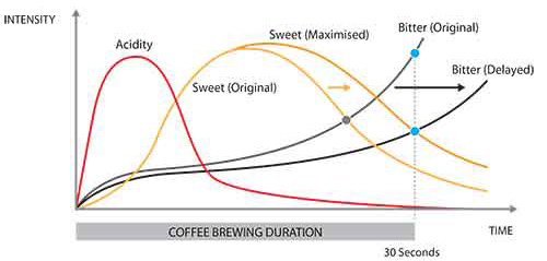 Als ik naar die flowchart kijk en jouw verhaal ernaast houdt (zure koffie), zou het advies niet zijn ‘fijner malen’ maar zorgen voor een tragere flow door je maalsel steviger aan te drukken of de dosis maalsel te verhogen. Mee eens?