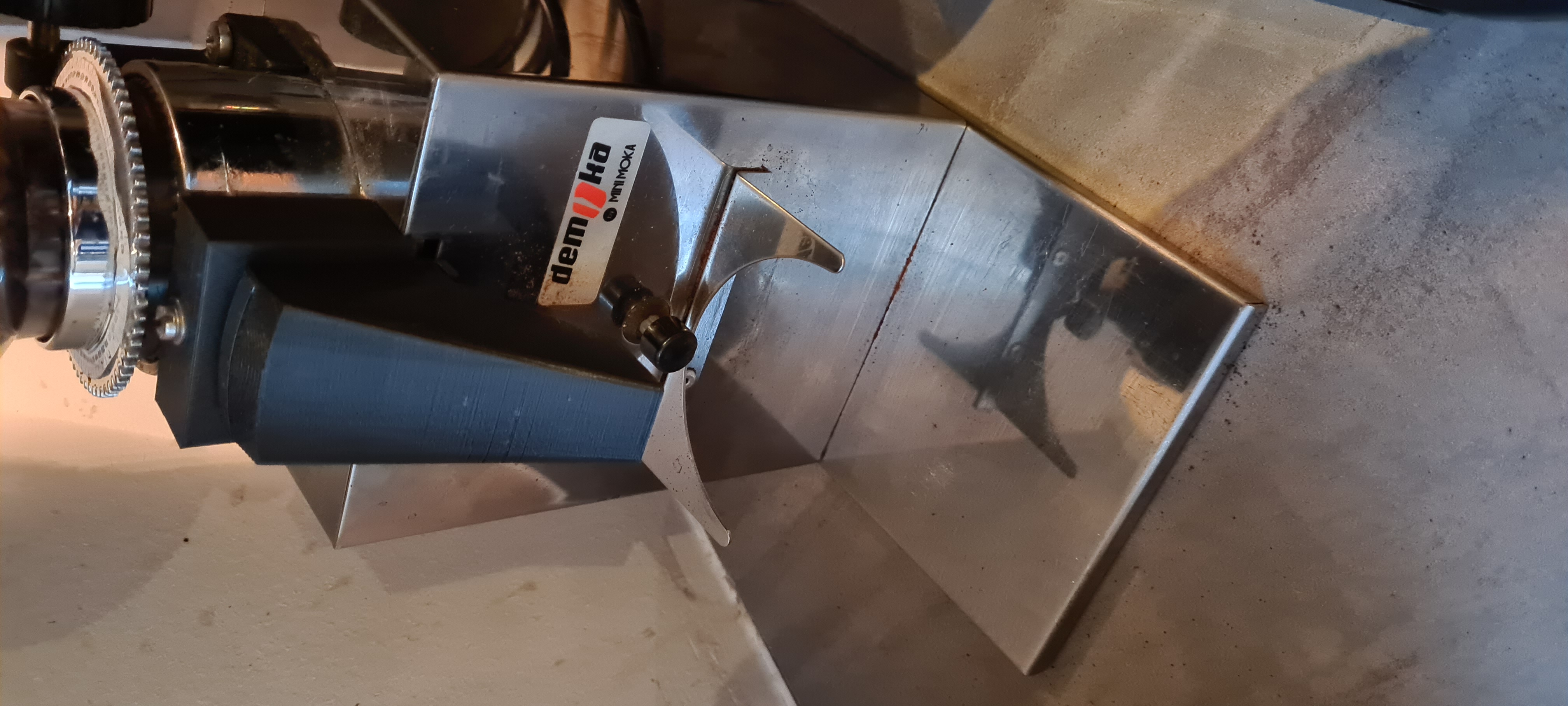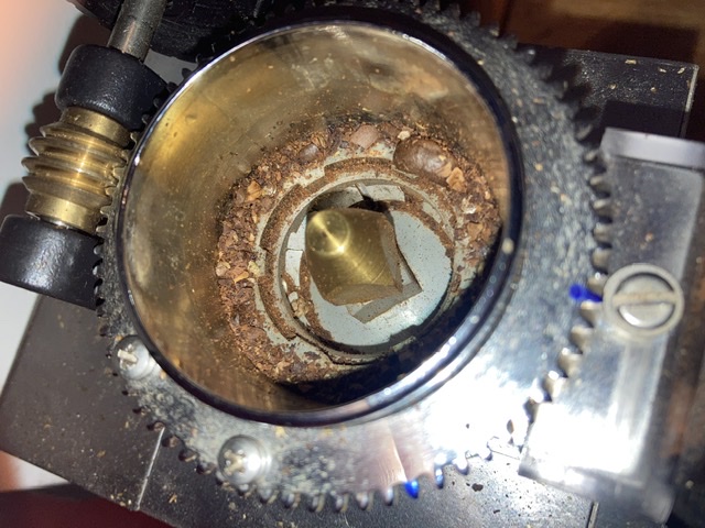 Ik kan weer koffie malen, maar nog niet helemaal klaar, de montage onder een hoek moet nog gerealiseerd worden maar de retentie is gezakt van 4 a 5 gram naar 0,9 gram.