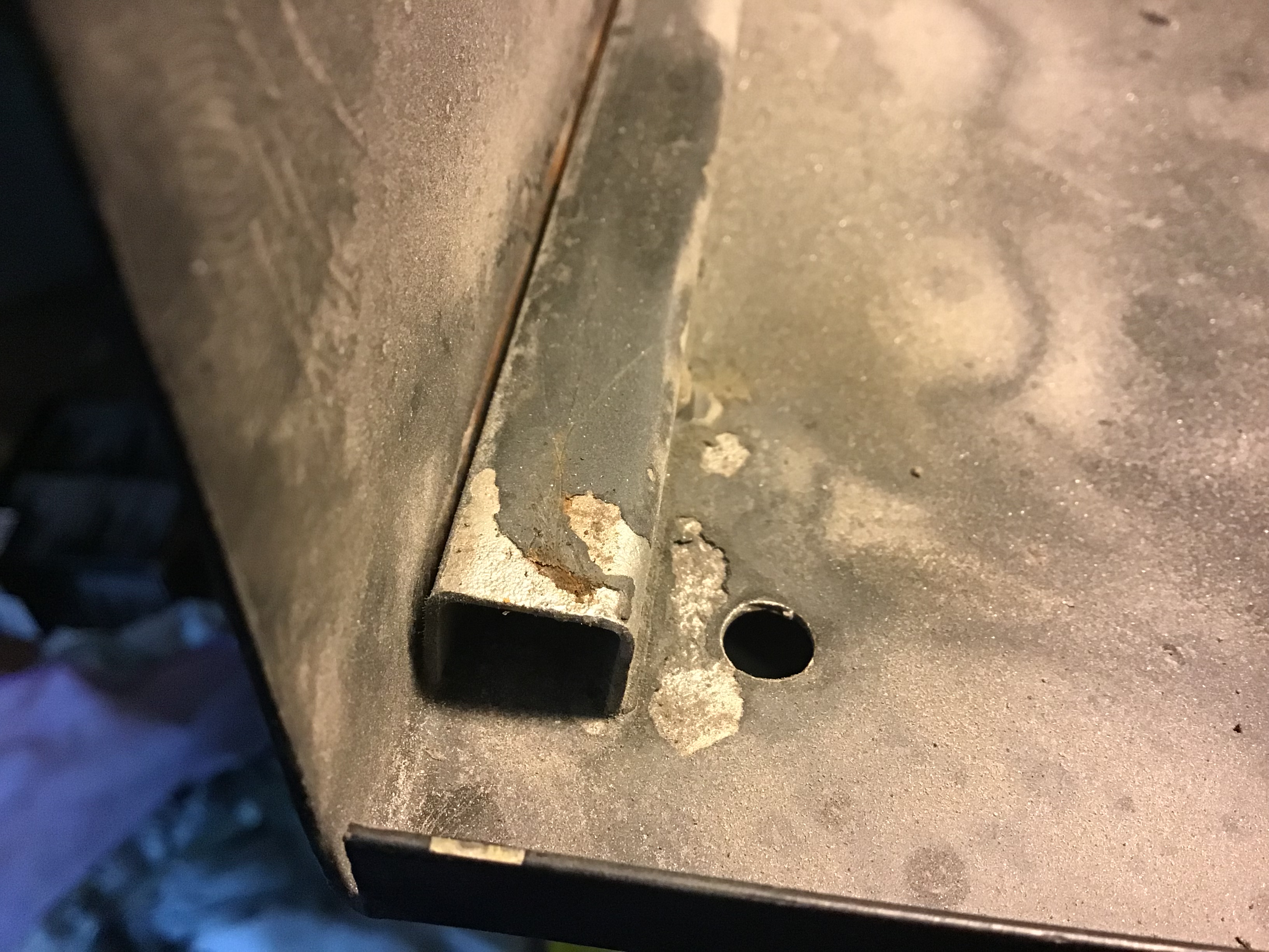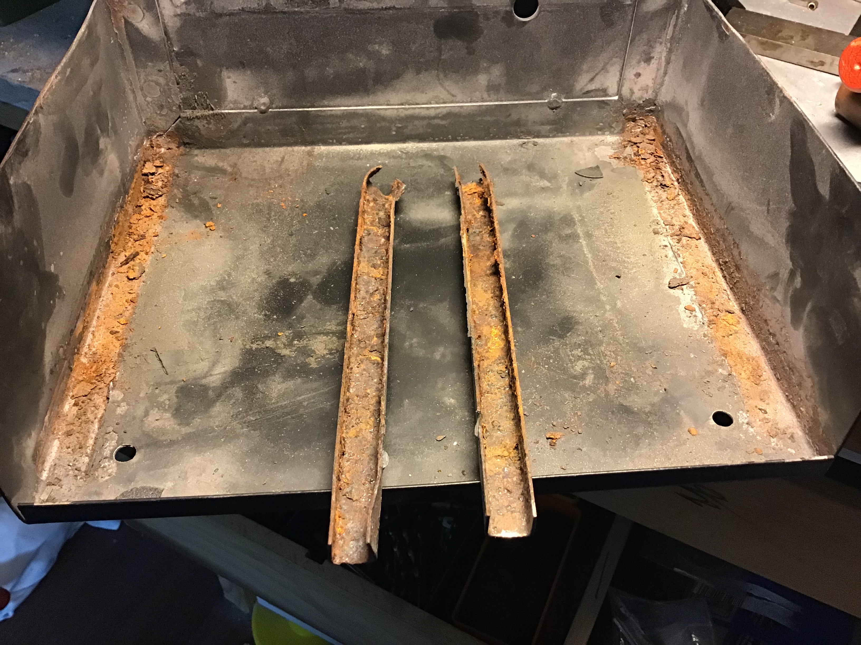 Probleem van de roest is dat de dragers voor de RVS lekbak tegen de zijkanten aan zitten, als daar vocht tussen