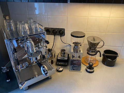 Op het wenslijstje staan een bodemloze filterdrager en een goede, oplaadbare weegschaal met auto-start functie. Verder overweeg ik een enkelkops IMS filter (9,5g) en als tweede maler een Eureka Mignon XL.