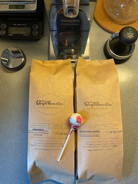 De zoektocht naar dé koffieboon is nog in volle gang. De afgelopen maanden hebben we de nodige proefpakketten uitgeprobeerd. Niet vers gebrand vinden we Diemme Oro en Cagliari SuperOro tot nu toe het lekkerst. Vers gebrand vielen Ethiopia van Fortin, Sodade van Brandmeester's en Grande Alta van Fascino goed in de smaak. Wie weet leidt de lolly tot nieuwe ontdekkingen.