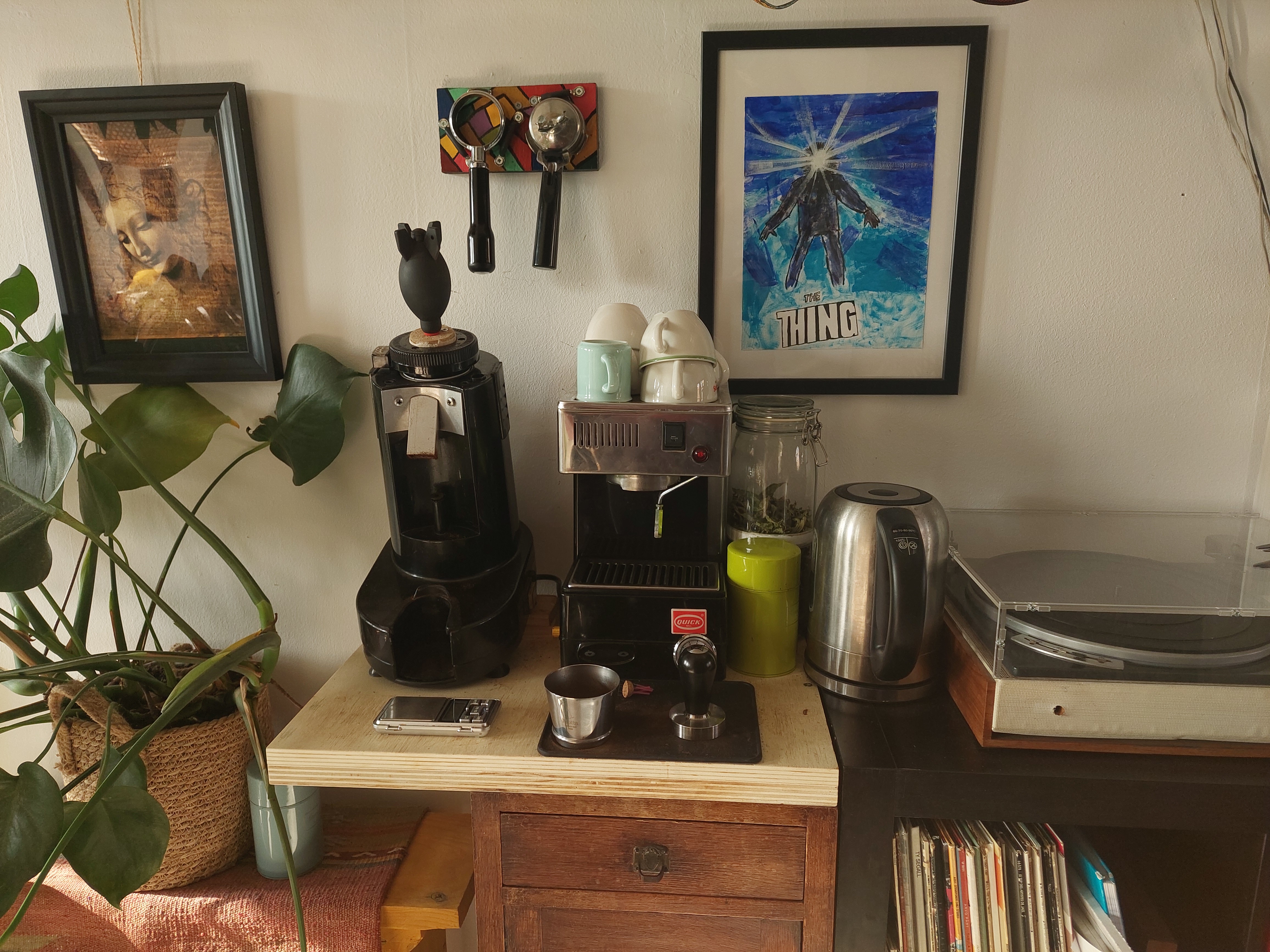 Het kastje heb ik geërfd en omgebouwd tot koffie/thee station. Perfect met uitkloplade