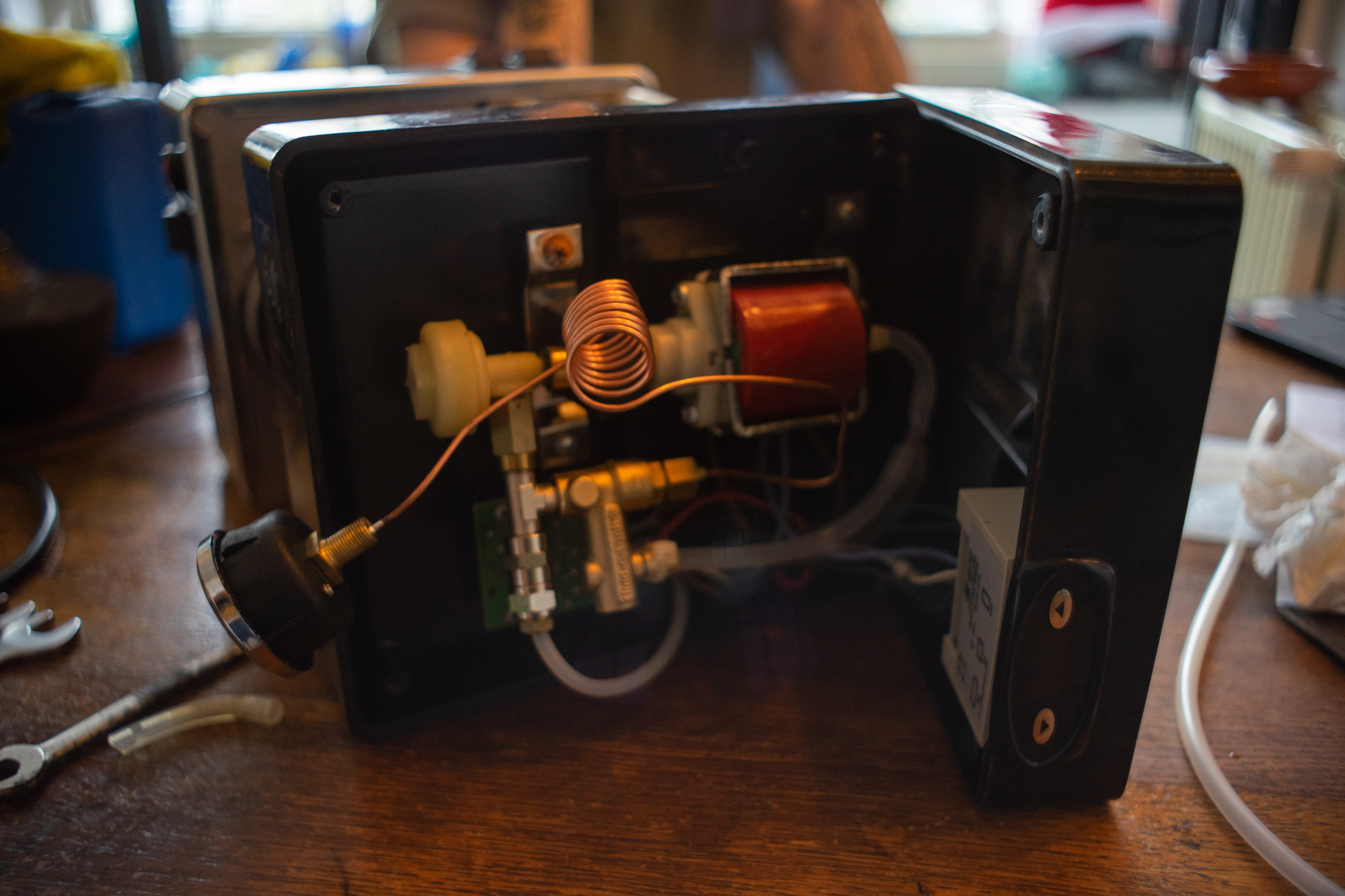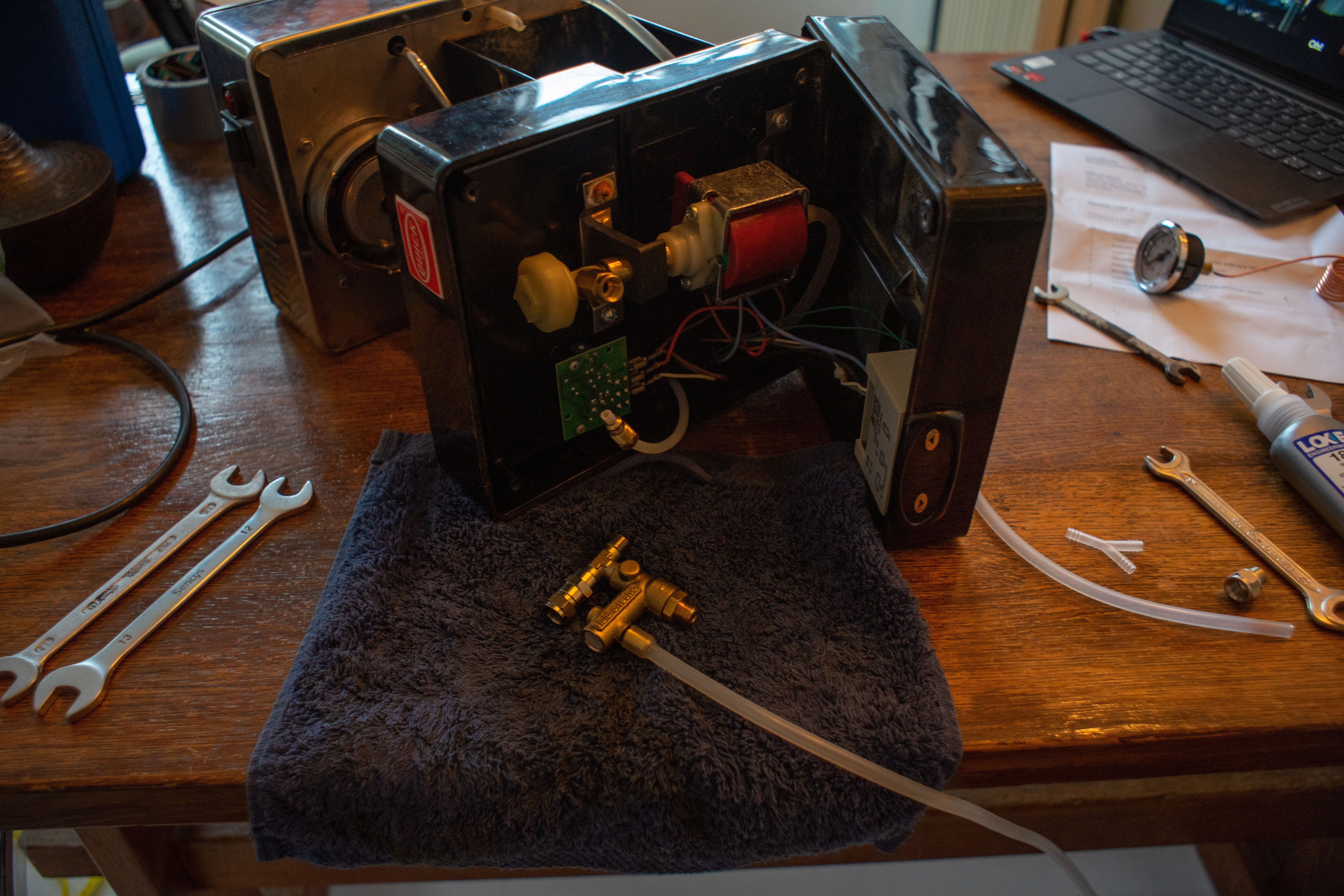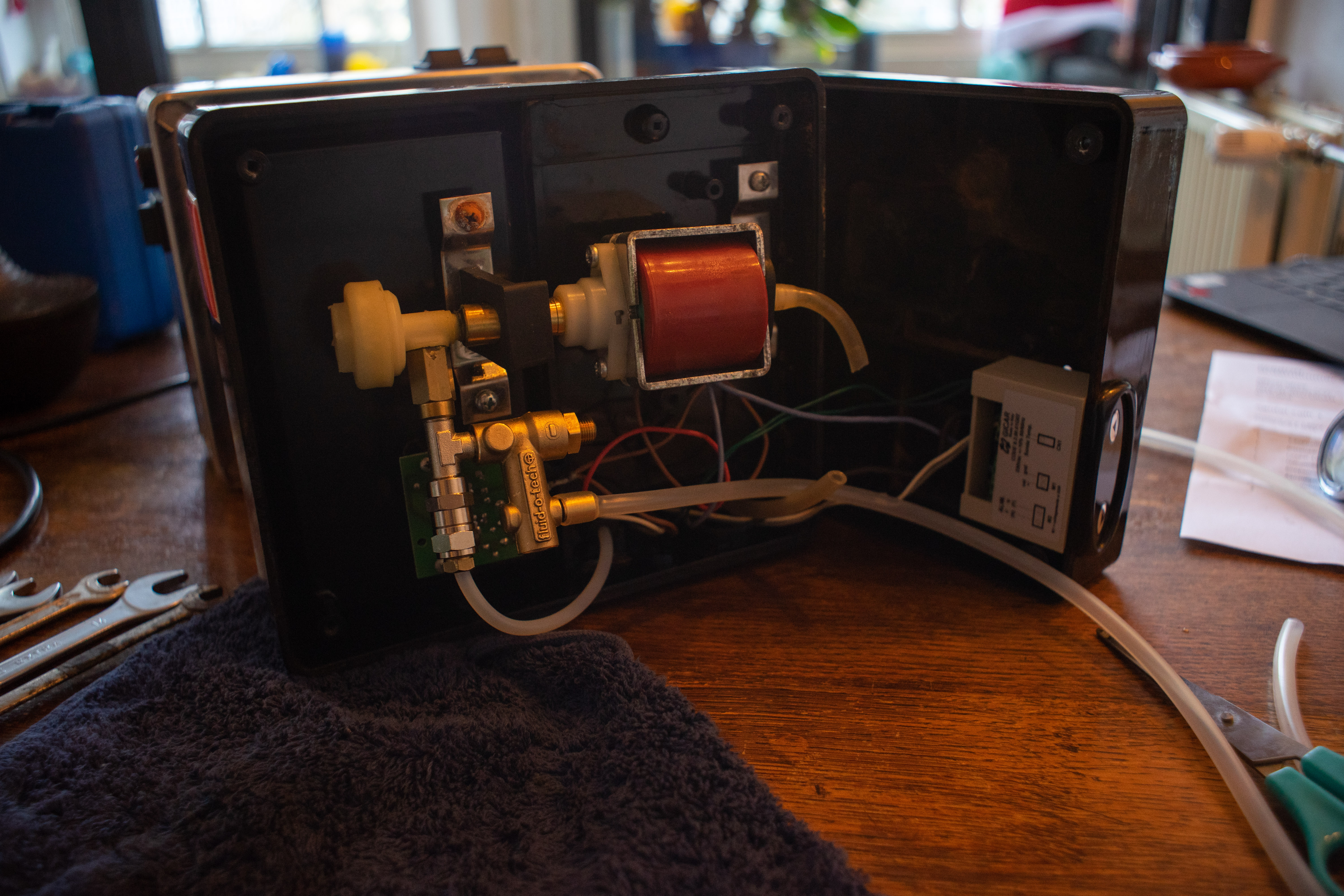 Een mooie, wat oudere Quickmill 820. Waar reeds een PID in was gebouwd. Zelf heb ik er een OPV ingezet en een dimmerswitch op de pomp.