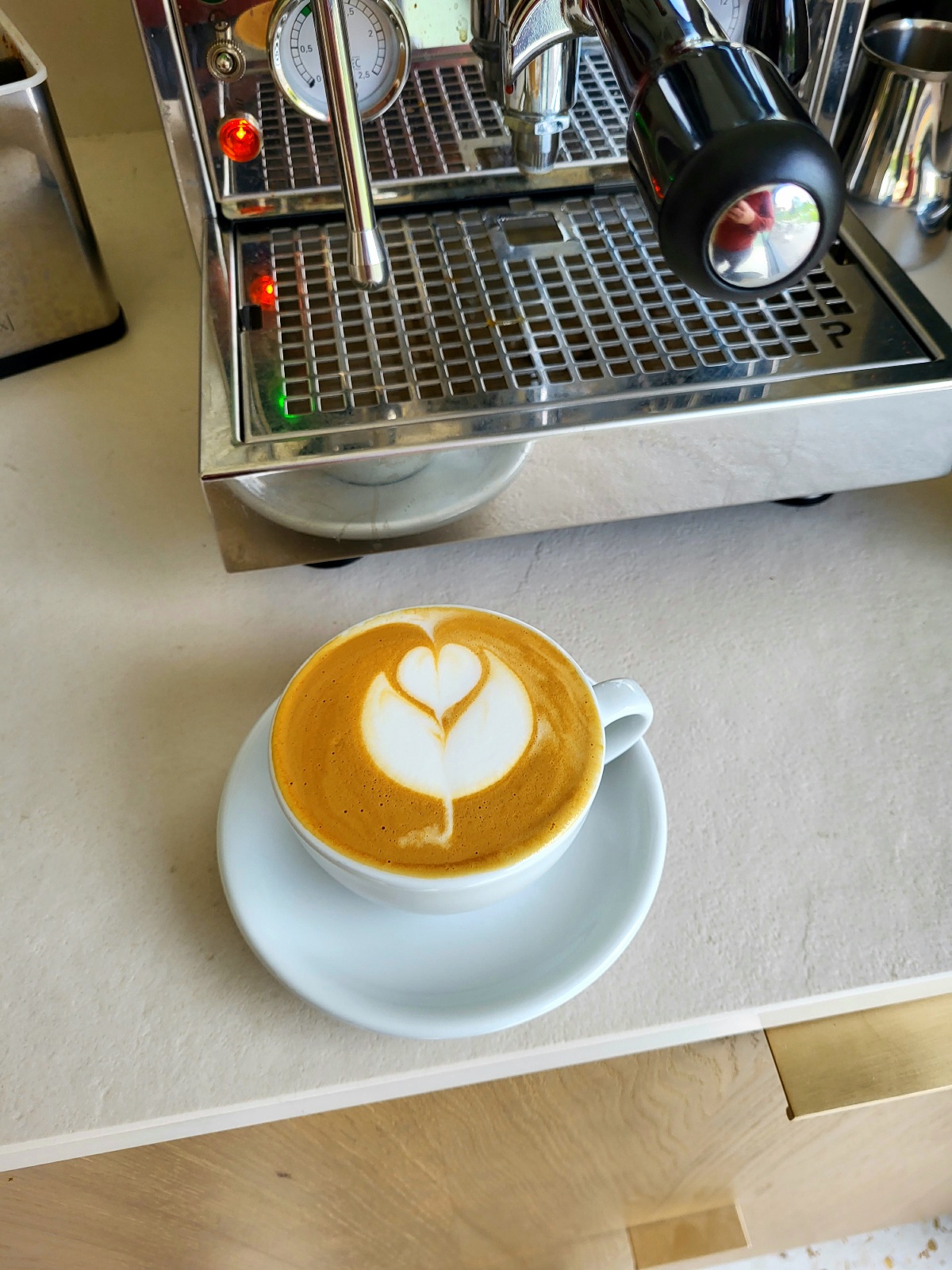 Vanuit wat je nu hebt gemaakt kun je verder werken. Als je nu met het kannetje van links naar recht wiegt, dus niet met de uitloop want dat gaat vanzelf als je het kannetje wiegt. Dan krijg je een golf beweging van de melk naar de uitloop en komt er een tekening als in een rosetta. Hoop dat je begrijpt wat ik bedoel anders maak ikneen keer een filmpje.