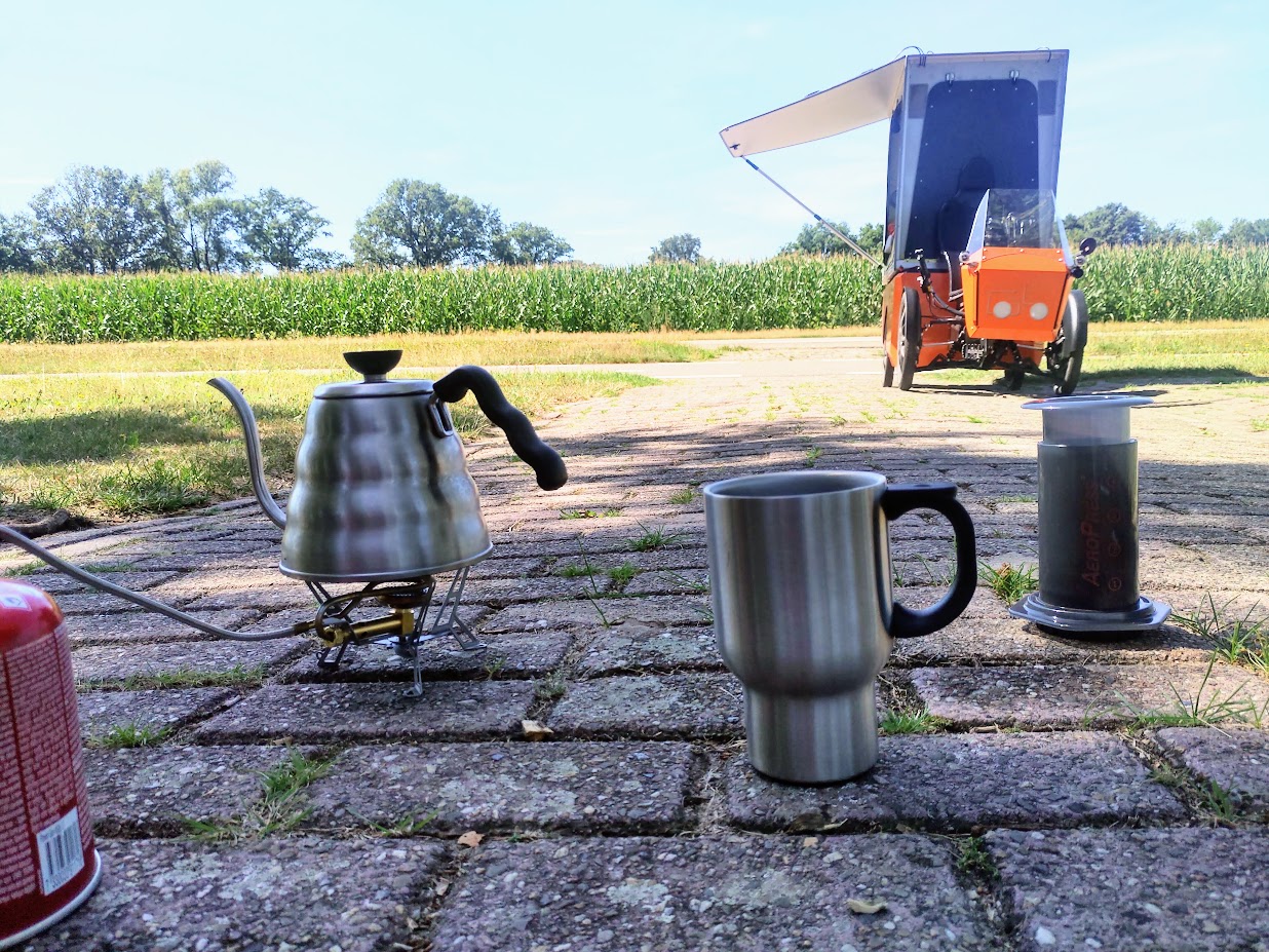 Ben nu met een rondje midden Nederland bezig, de vrachtfiets is productierijp, de kampeer module is voorlopig eenmalig.