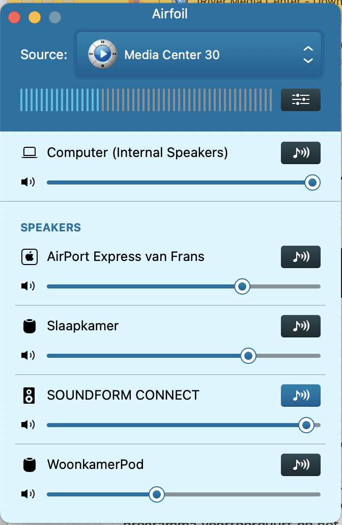airfoil is een app die audio van diverse bronnen op de laptop naar diverse uitvoer kan sturen.