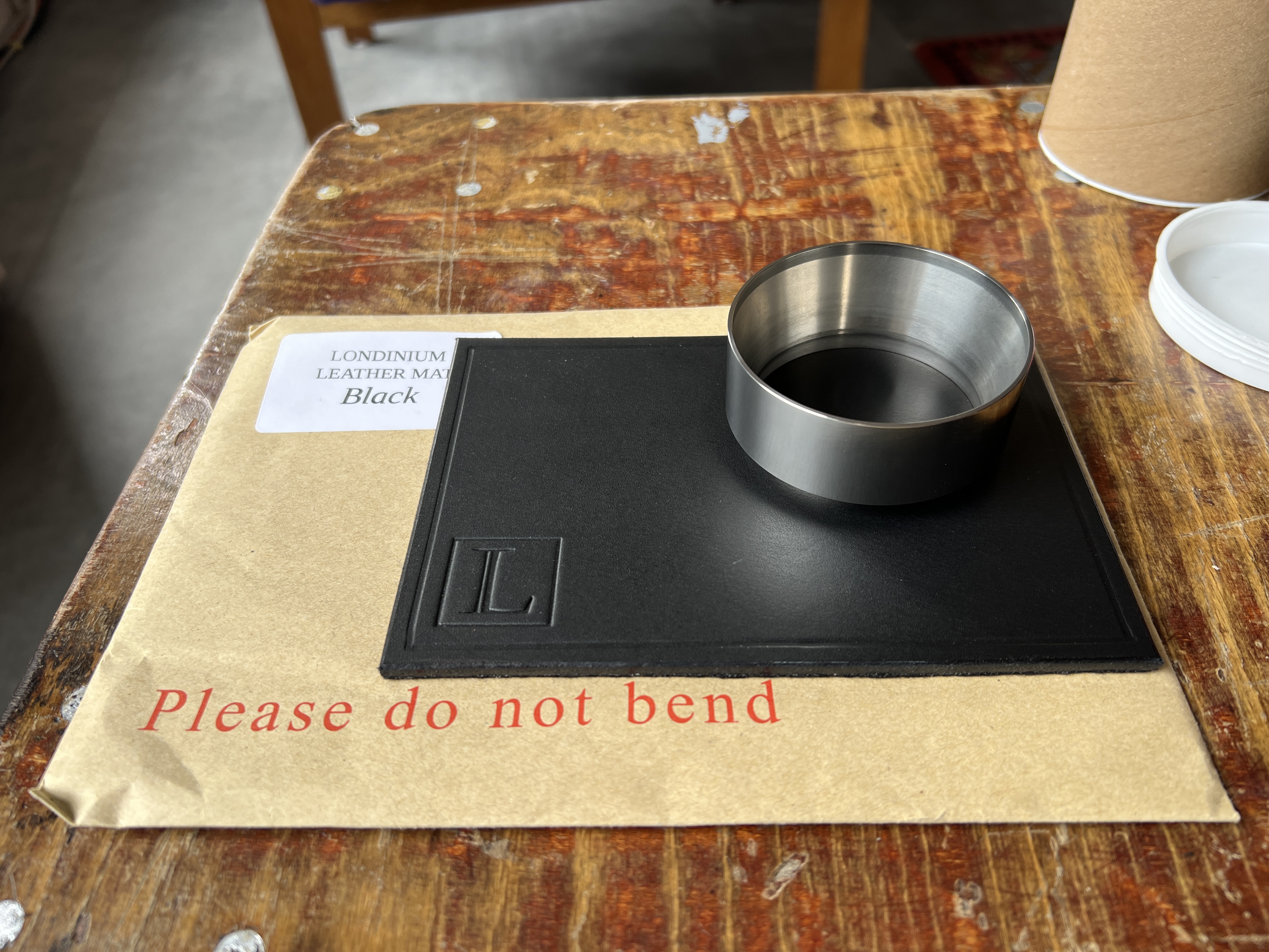 Londinium zwartlederen tamp mat en doseerklutsring [gereserveerd]