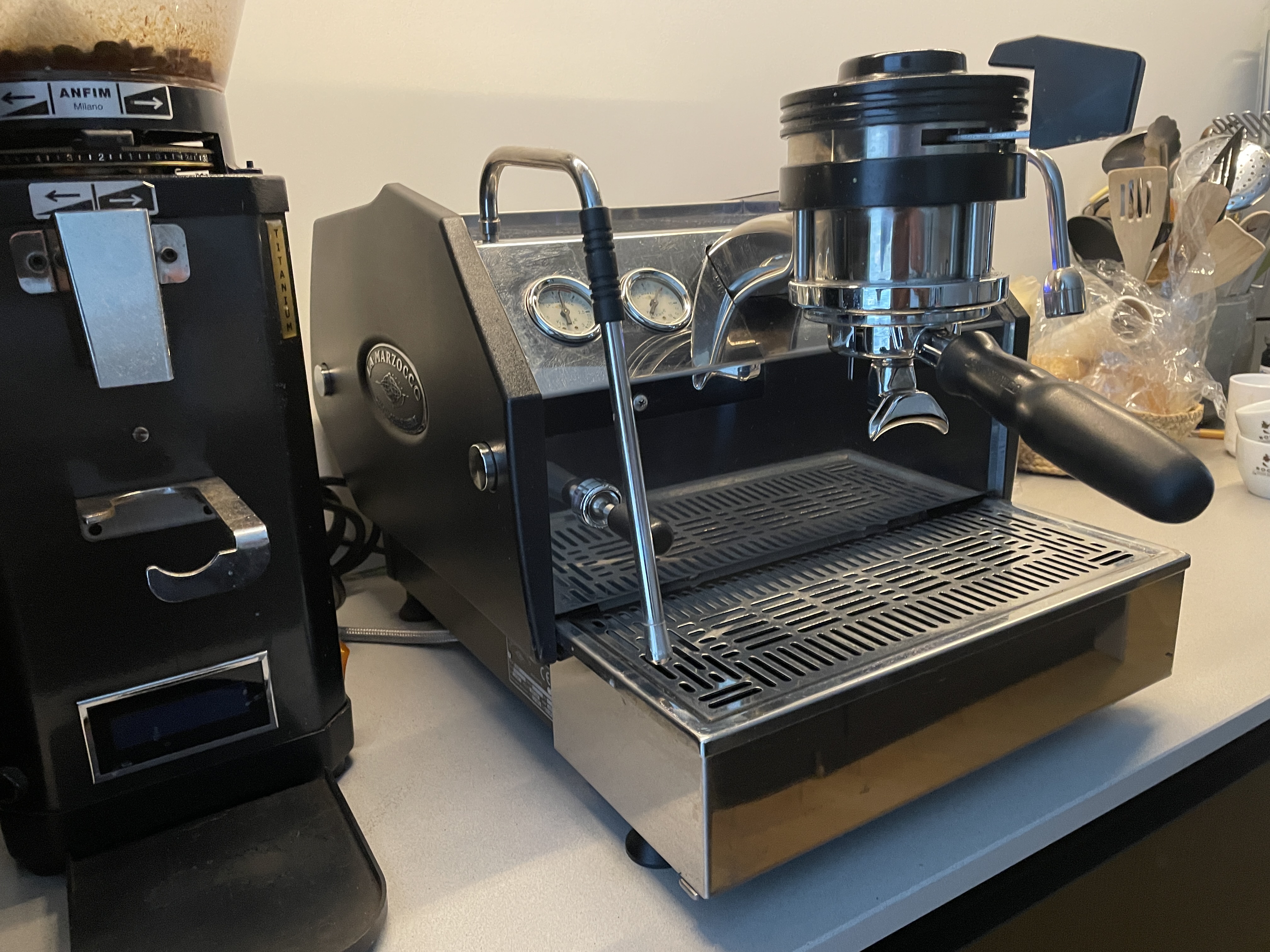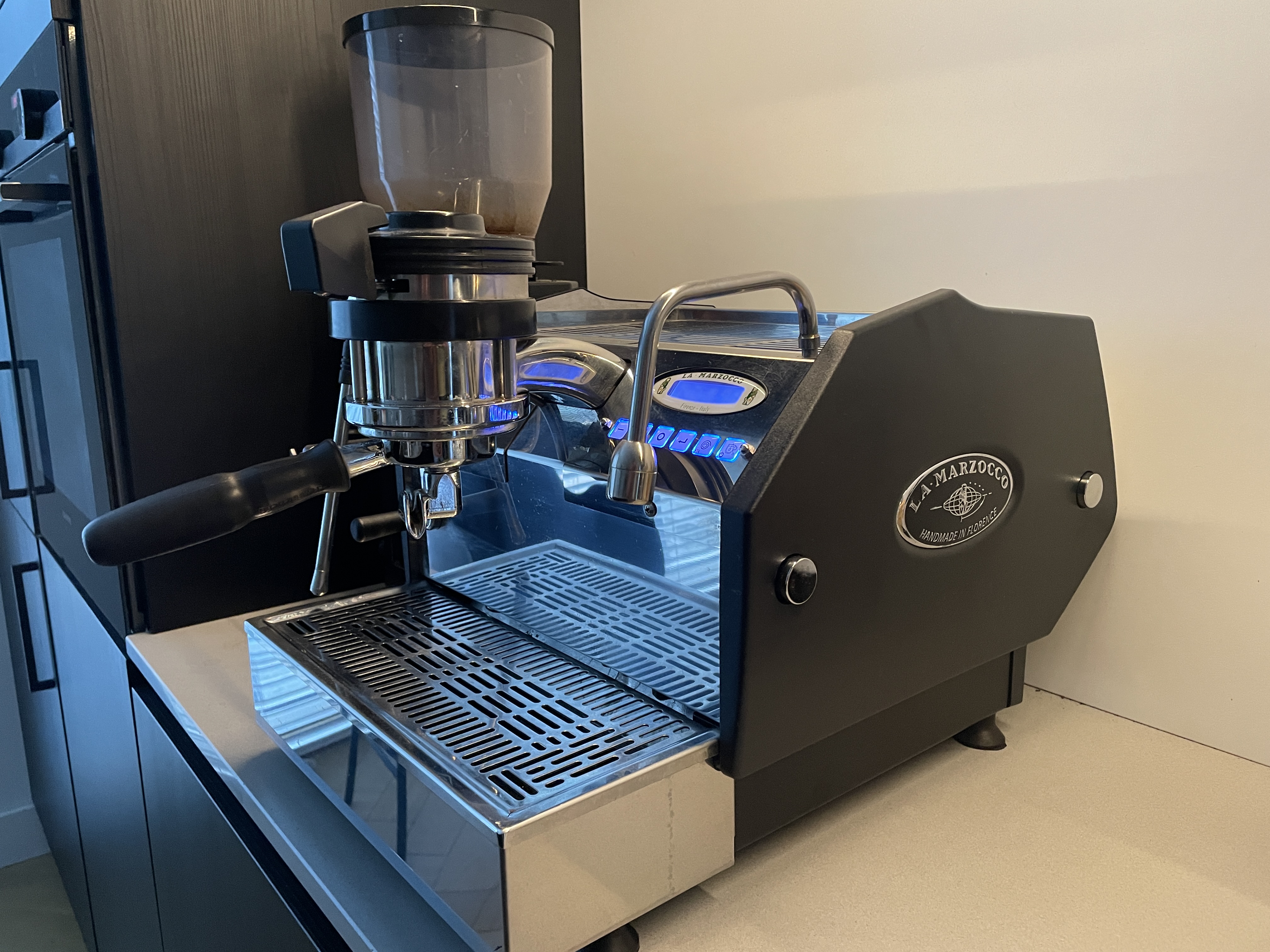 De afgelopen 10 jaar heb ik volle bak genoten van de machine die ik nu ga verkopen; de La Marzocco GS3 met paddle. Ik vermoed dat deze geen toelichting nodig heeft. Het is dus niet de automatische, maar de paddle versie, waardoor je kunt spelen met pre-infusie.