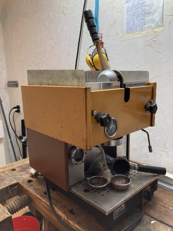 De groep lijkt die van een Bezzera B2000AL, maar ik zie 1 groot verschil: de groep wordt verwarmd vanuit de boiler, niet vanuit de HX.