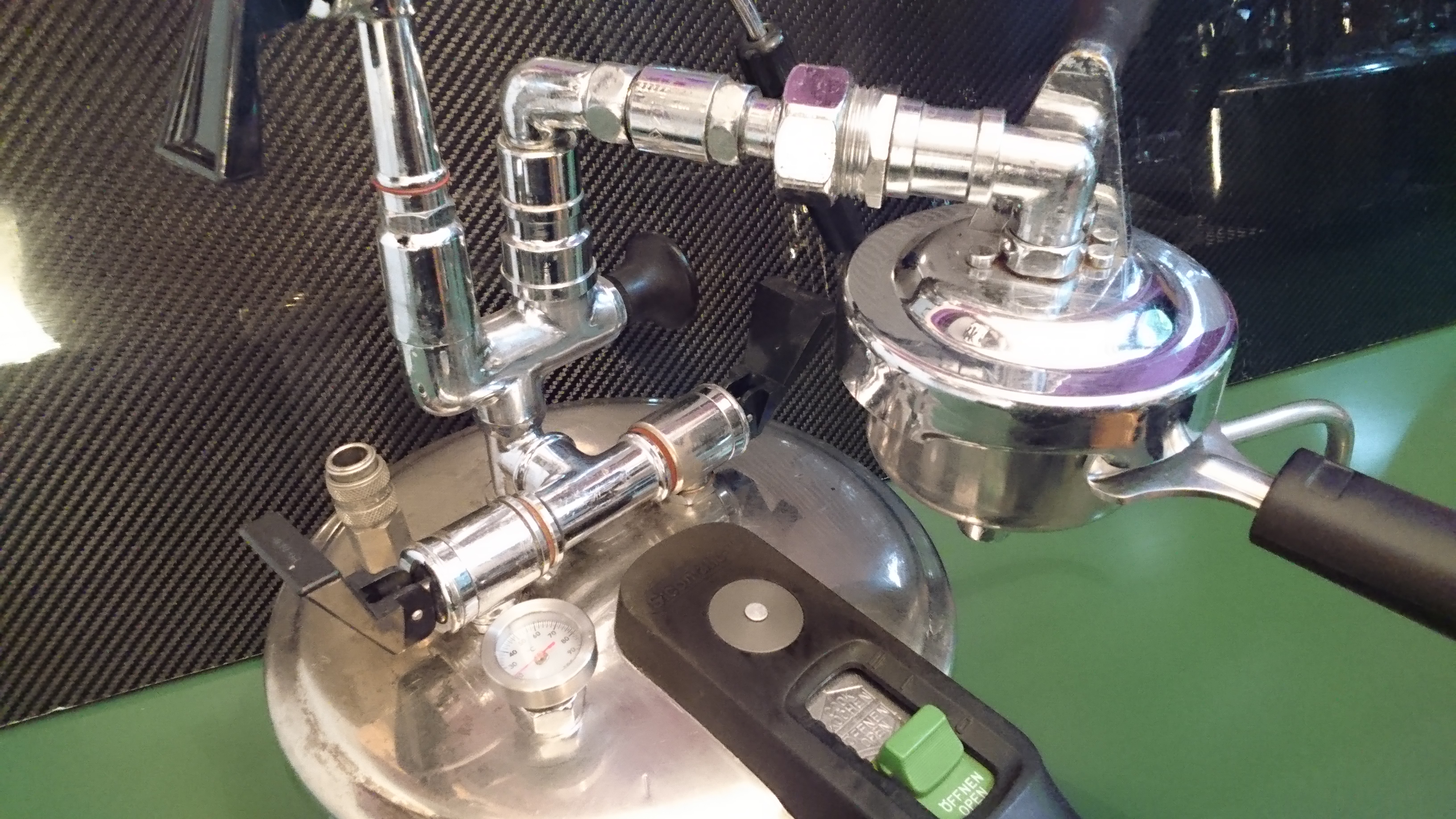Machine voor mijn vrouw: QuickMill Aquaviva = 2820 & een QM3000. Werkruimte: Rancilio Silvia PdG V2 en La Pavoni Europiccola.