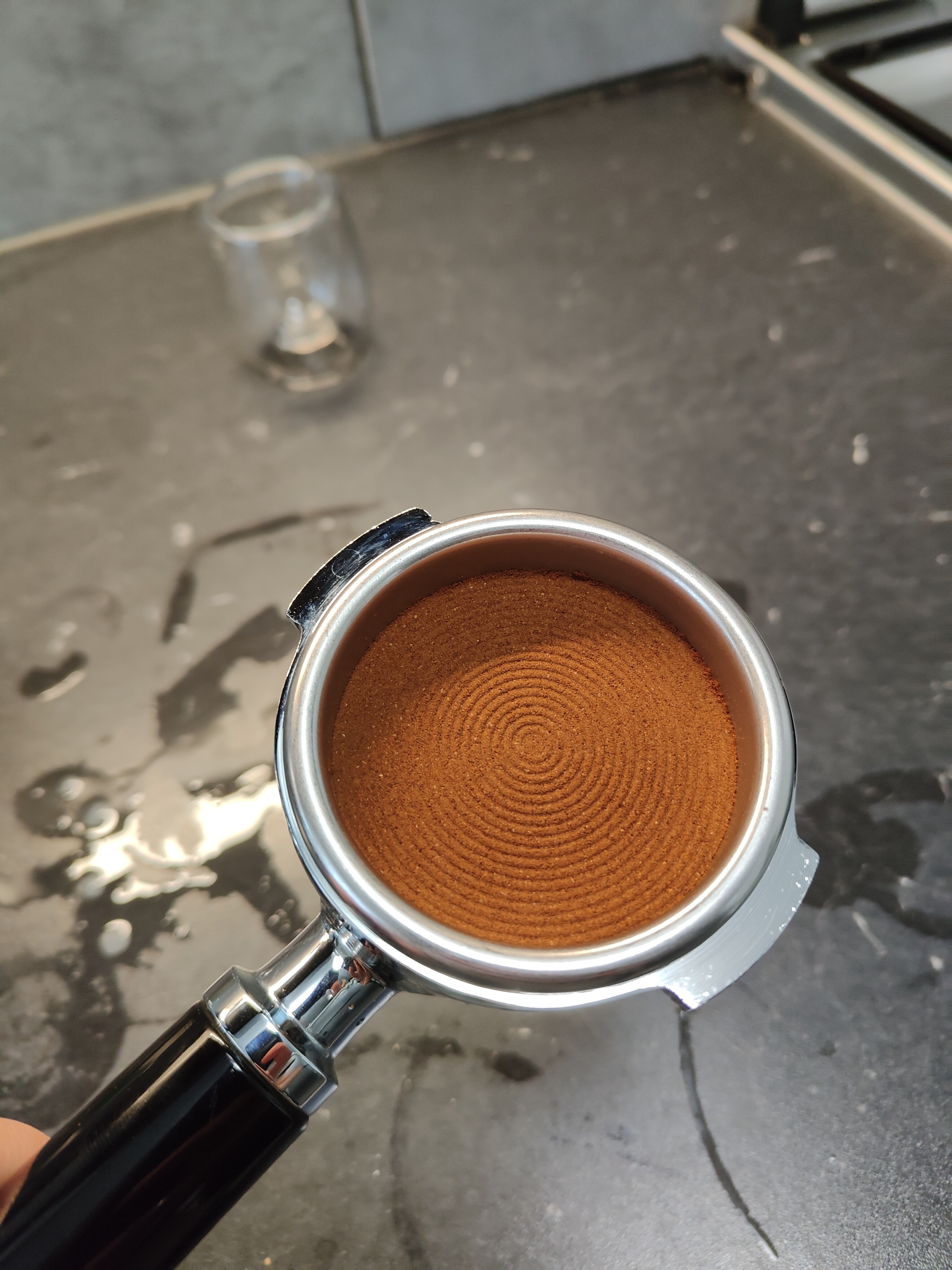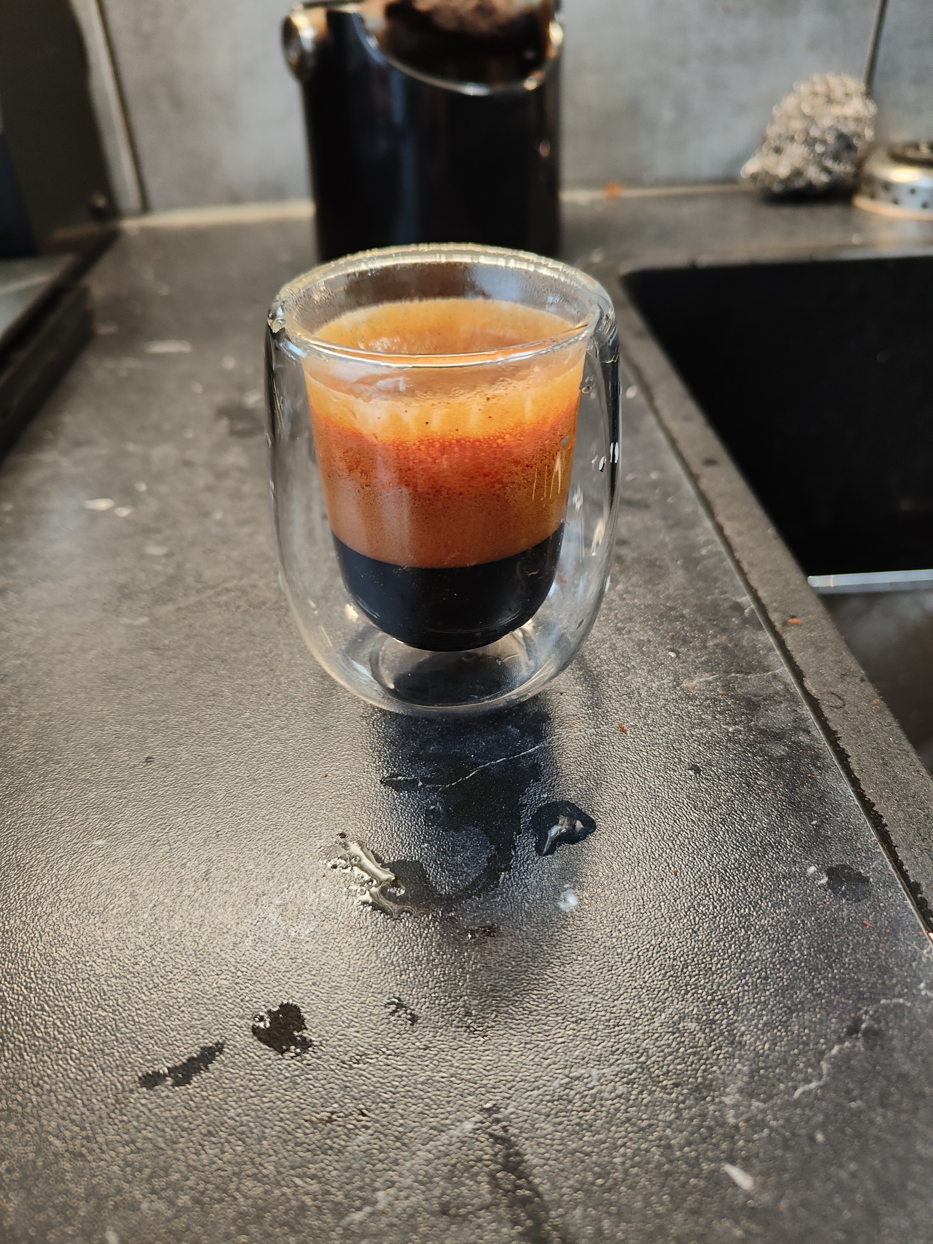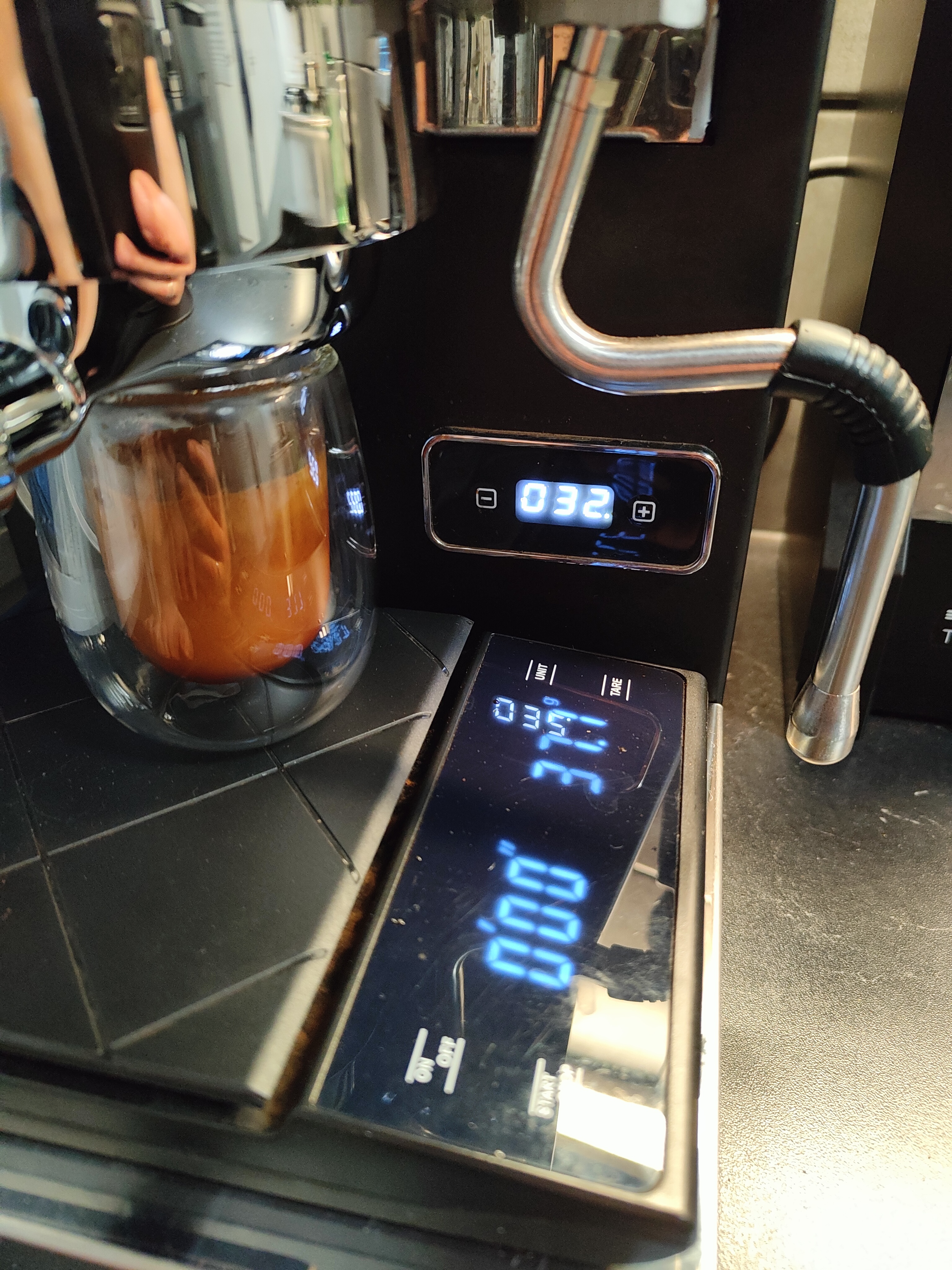 Ik laat dit korter doorlopen als wat ik gebruikelijk doe. Shottimer staat meestal totaal tussen 28-30 seconde met daarin opgeteld 7 seconde pre infusie.