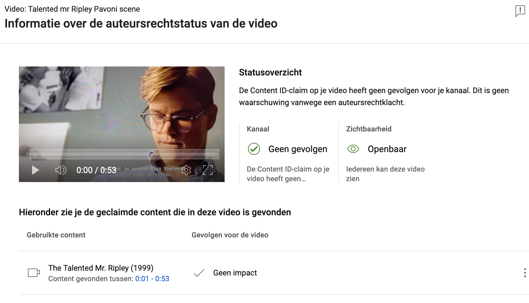 Dat heb ik al vaak gehad ivm muziekje onder een filmpje. Paar waarschuwingen met als oplossing de rechten van de clip en de muziek over te doen aan 1 of ander bedrijf die de rechten zou beheren. Tsja, dat moet dan maar.