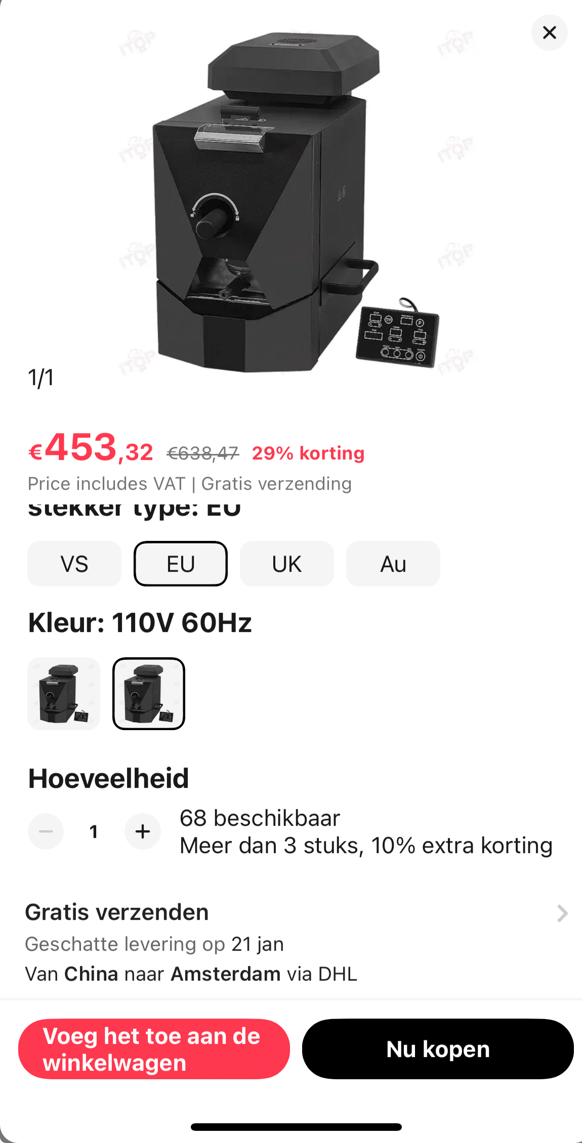 SpargelTarzan schreef:Ik heb net dit geweldige item op AliExpress gevonden. Bekijk het nu! €453,32 29% Off | Itop 500G Koffiebrander 3 Braadprogramma 'S Eenvoudige En Leuke Bediening Huishoudelijke Koffiebonenroostermachine Met Rookfilter