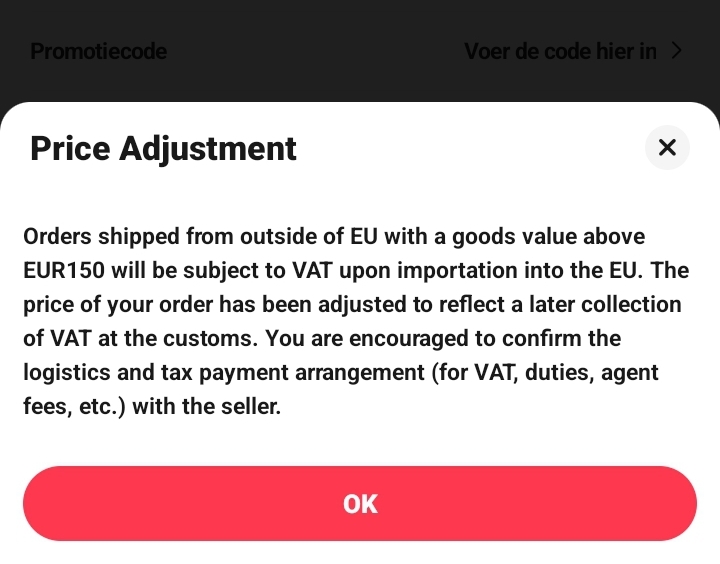 Dat is omdat de inklaringskosten eraf zijn en btw. Boven 150 euro gebeurt dat. Die komen er nog bij later voor jou....