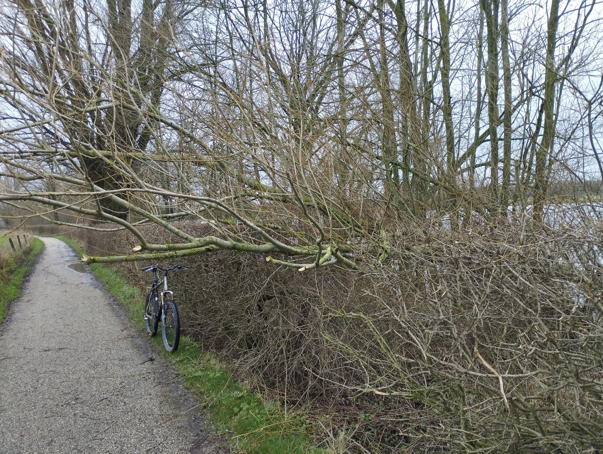 Knalde bijna met fiets tegen boom over pad.