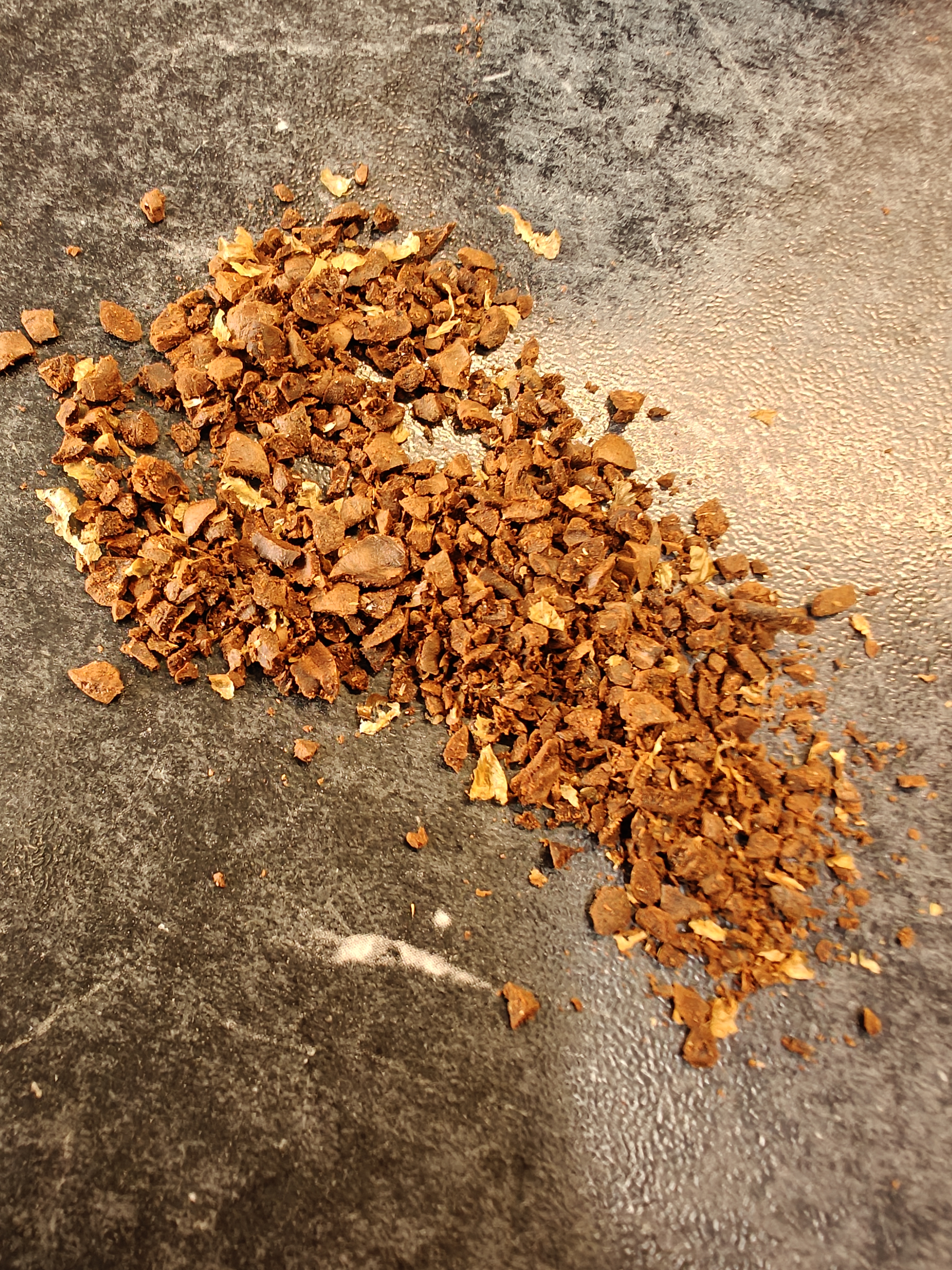 Het lijkt niet op gemalen maar stukjes koffie en fijner kan bijna niet verder want dan hoor ik de schijven tegen elkaar lopen.