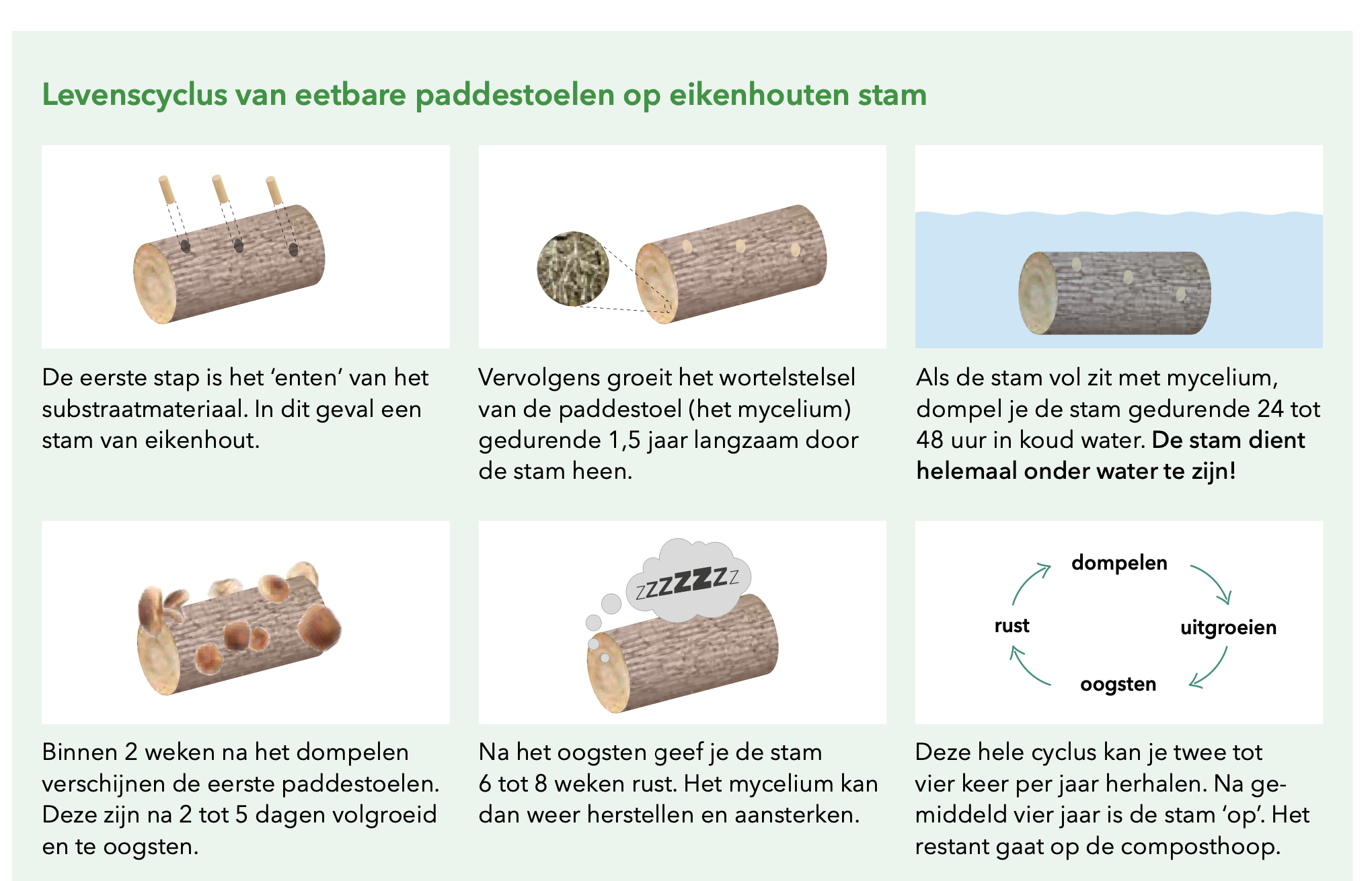 Shitake gaat niet in een emmer maar op een eiken hout boomstammetje. Dat is wat de shitake vraagt om te groeien.