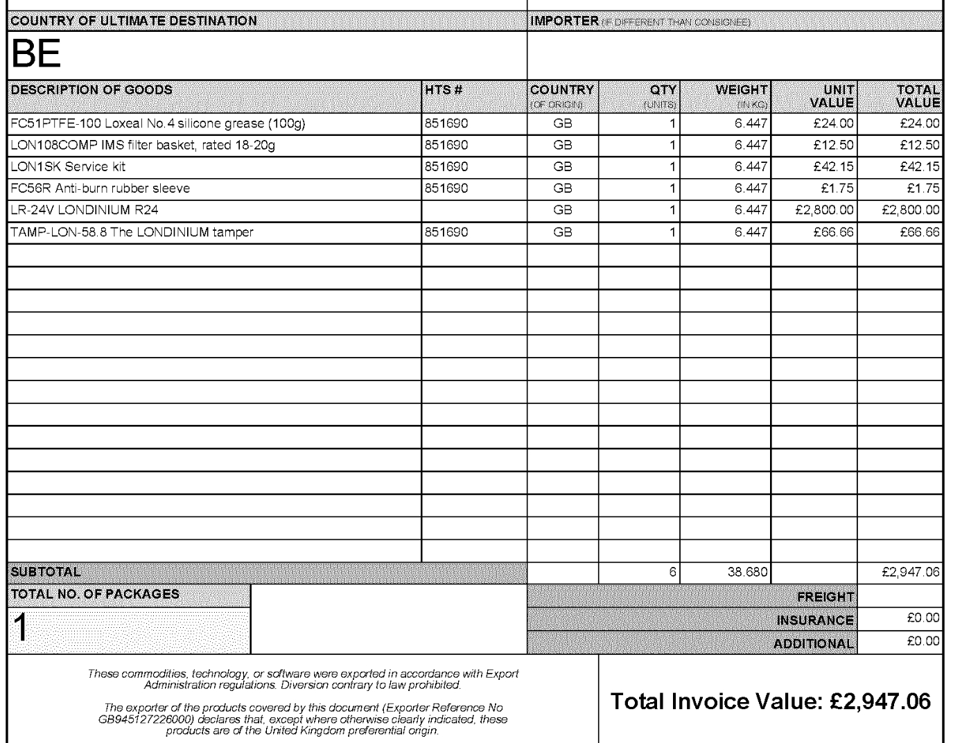 Aan DHL betaalde ik € 770,78, waarvan € 745,96 voor de btw en € 24,82 voor de inklaringskosten. De btw werd (door DHL) gebaseerd op de 'commercial invoice' die bij de zending werd ingesloten.
