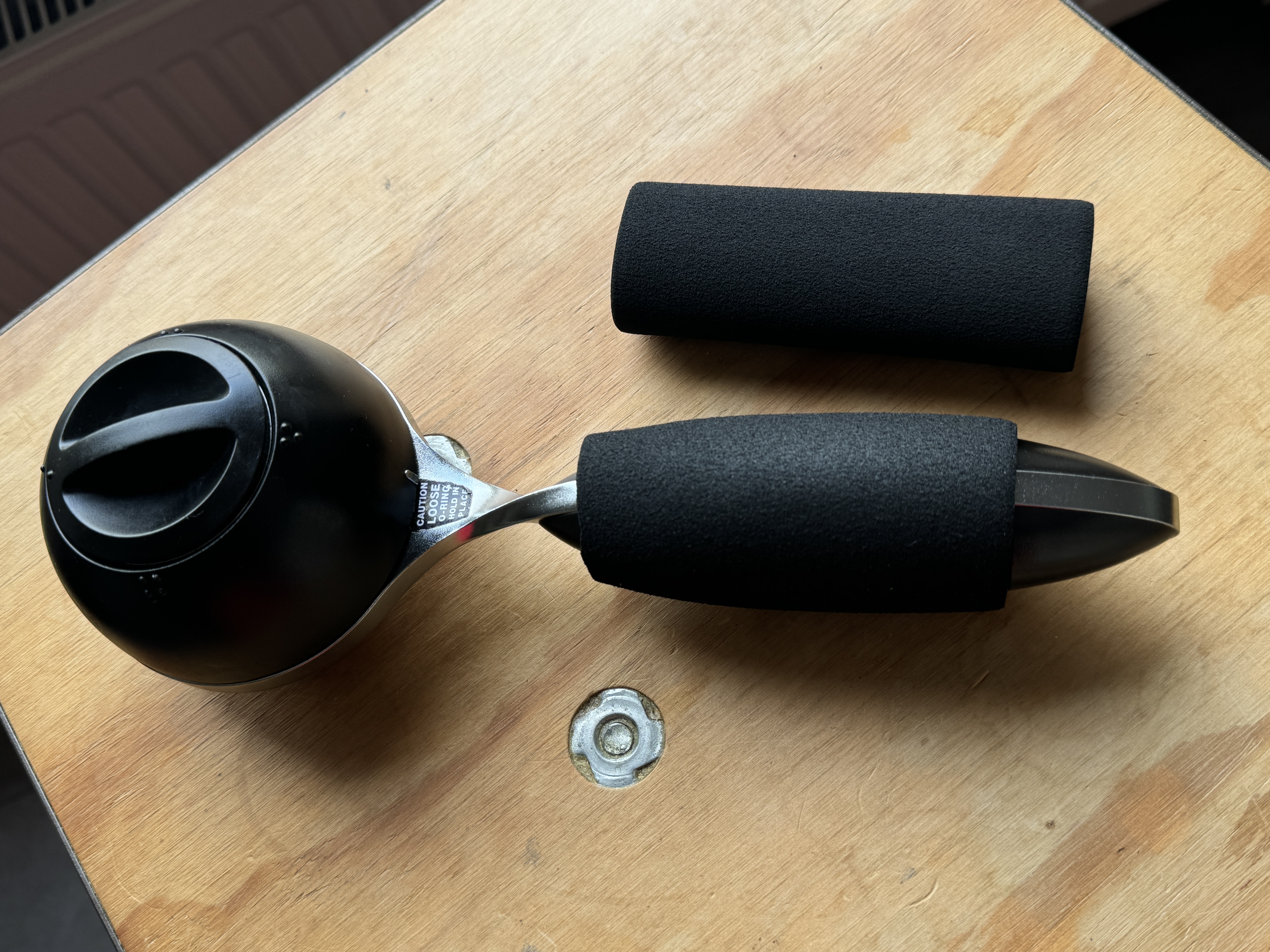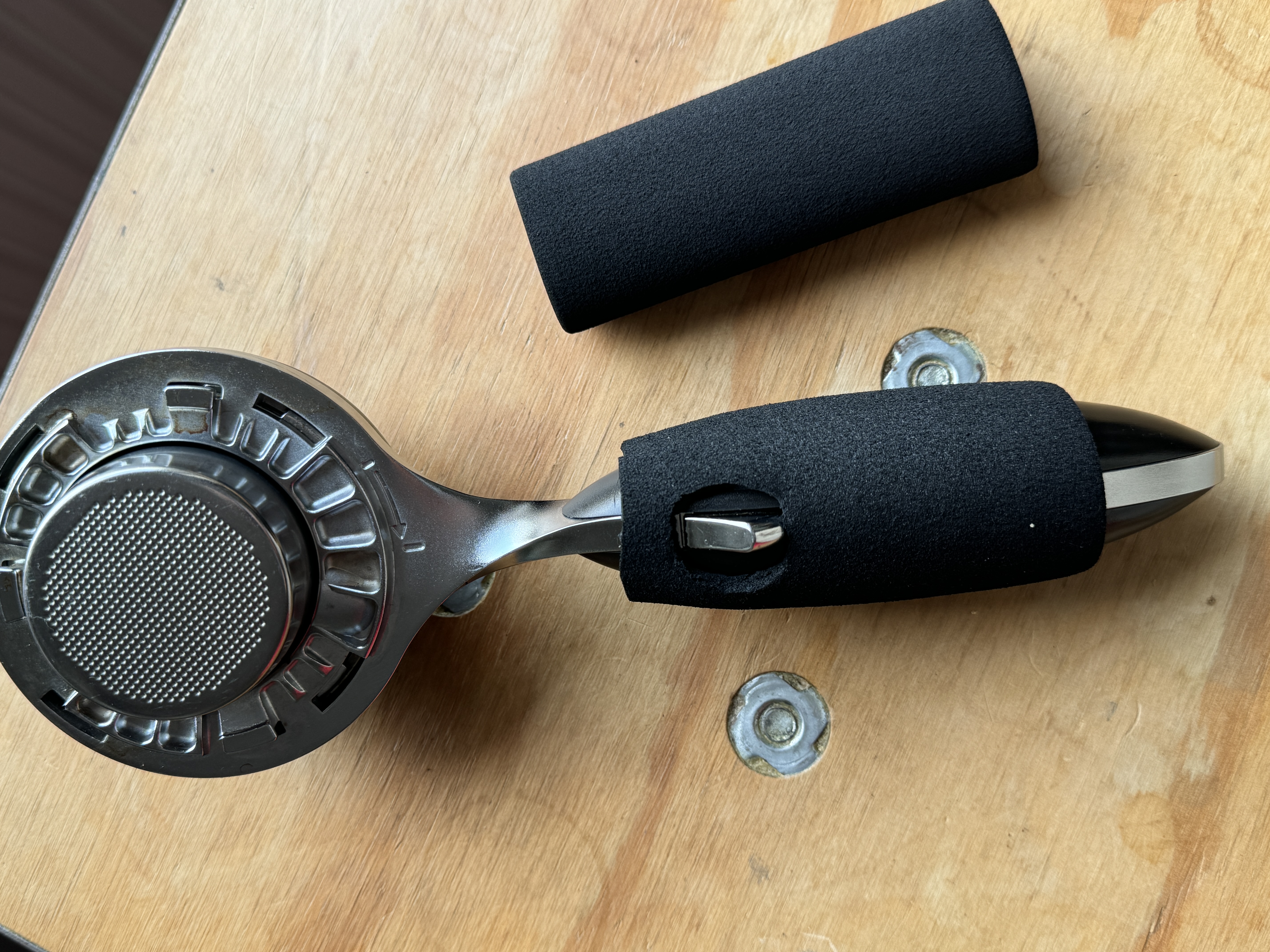 @tekort tipte mij dat hij een handvat heeft gevonden op de Amazon waarmee je de twee 'schelp' helften van het handvat van de Mypressi netjes bij elkaar kunt houden wanneer die de neiging krijgen los te laten.