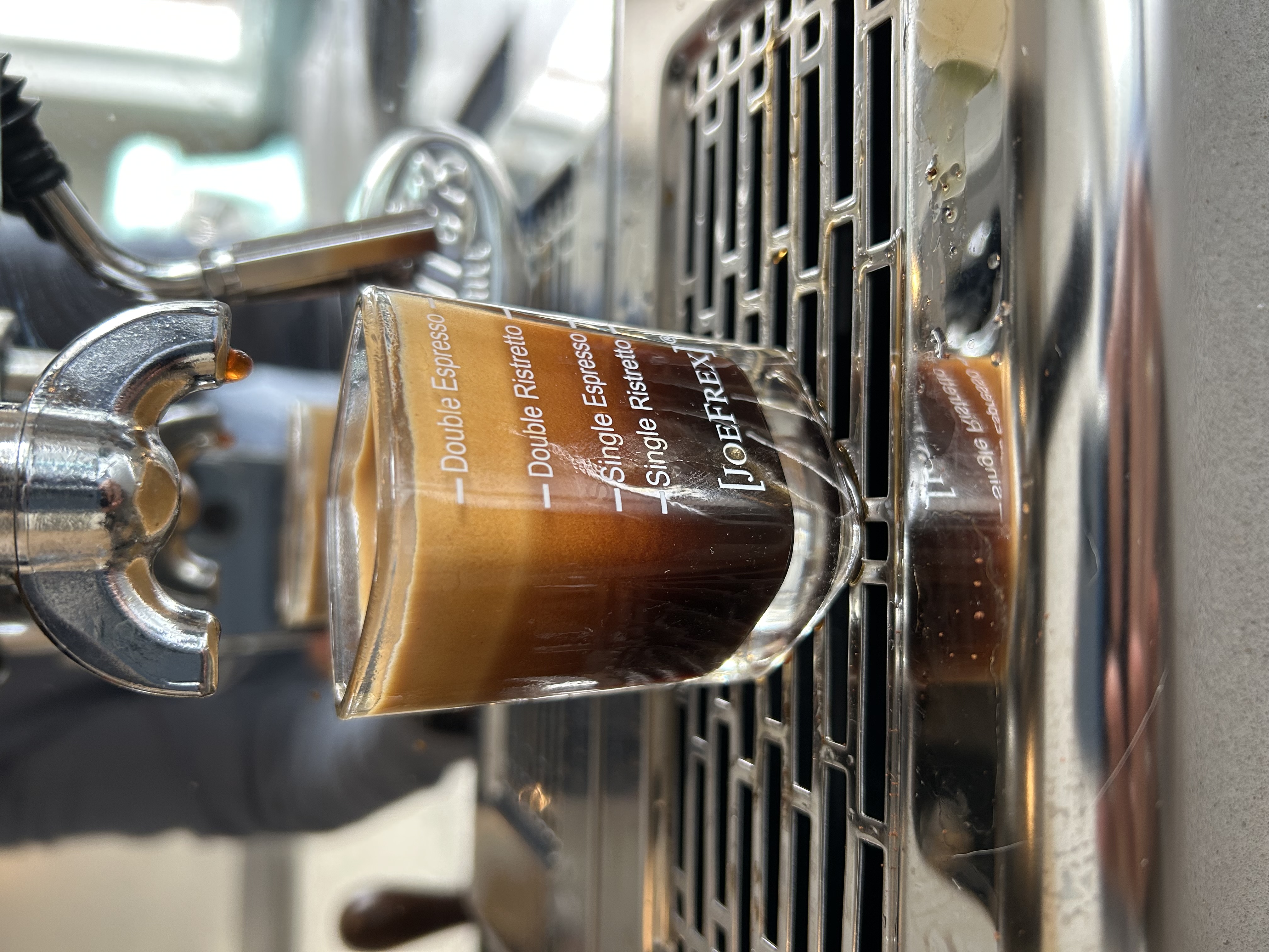 De double espresso is in mijn ogen perfect. 16 gram, heel fijn gemalen. 20 sec. Niks meer aan doen.