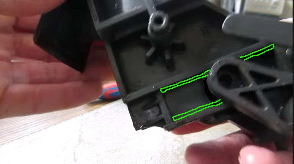 - in de plaats daarvan in de sleuf van het "vaste deel" van de brouwunit, aan de bovenkant en onderkant, een hardplastic strip lijmen van de juiste dikte (ca. 2,5-3 mm)