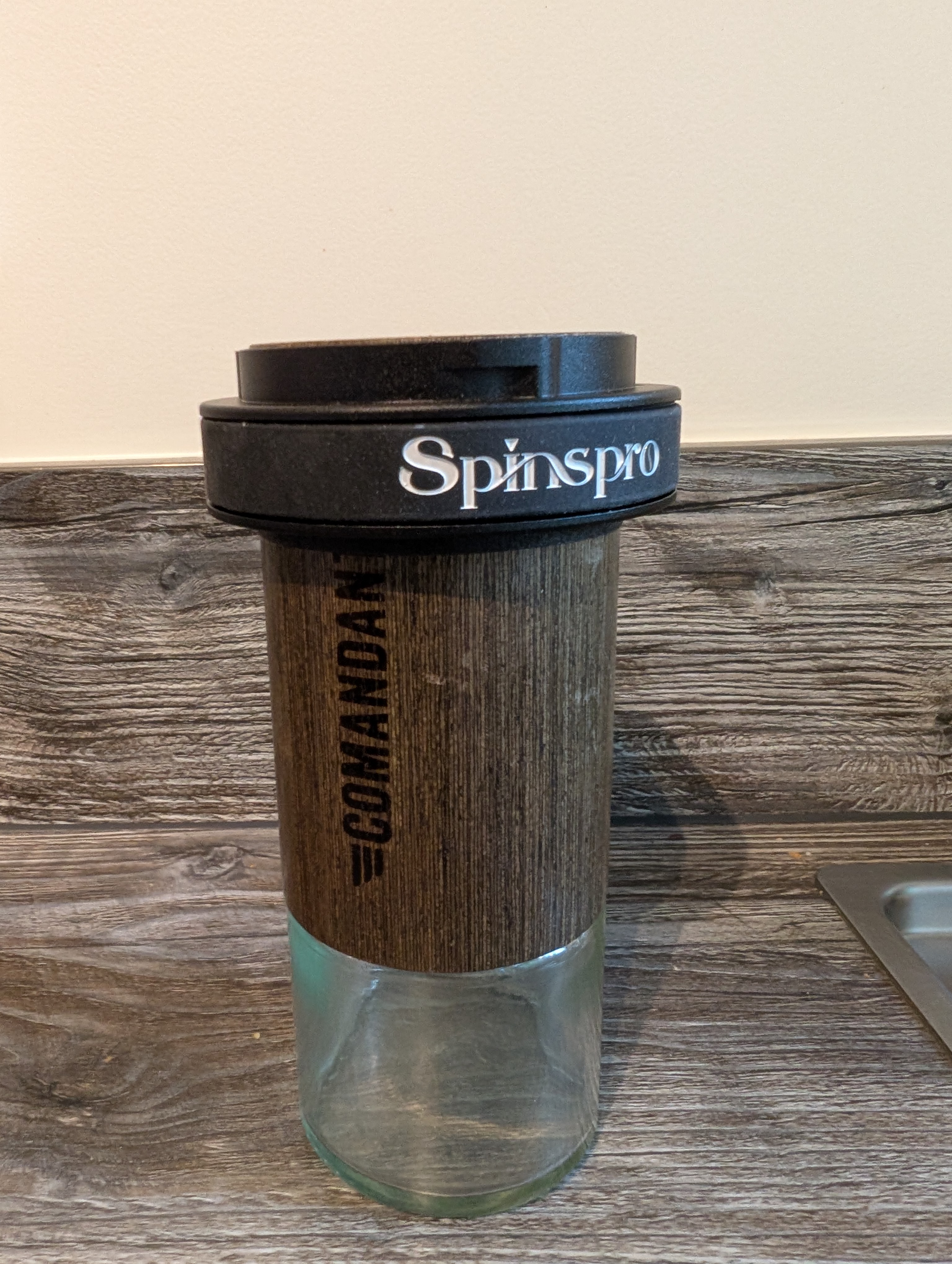 Nieuw binnen: de Spinspro van Unit Design. Een handig, klein apparaatje, gemaakt om handmalers zoals de Comandante elektrisch te laten malen.