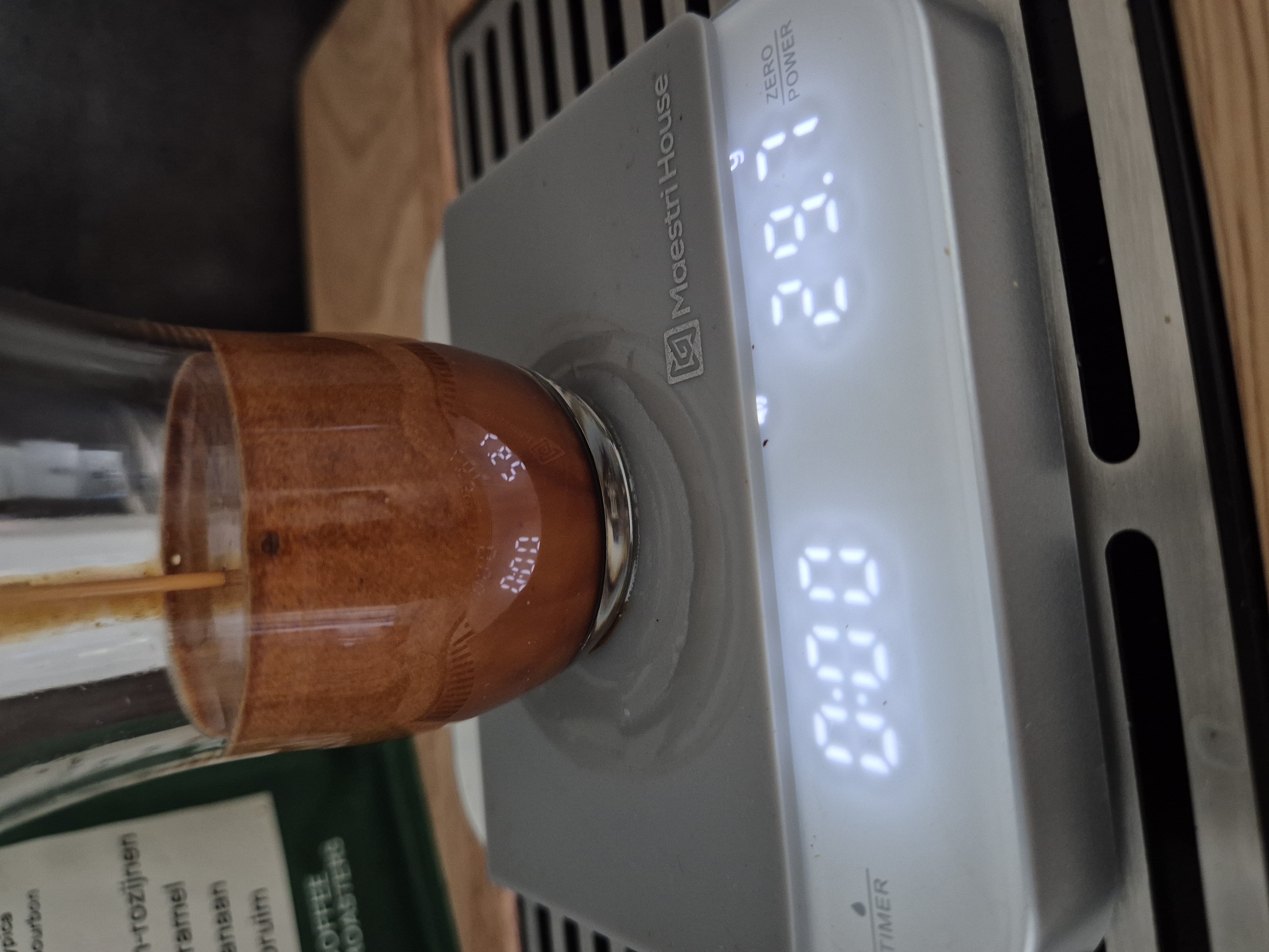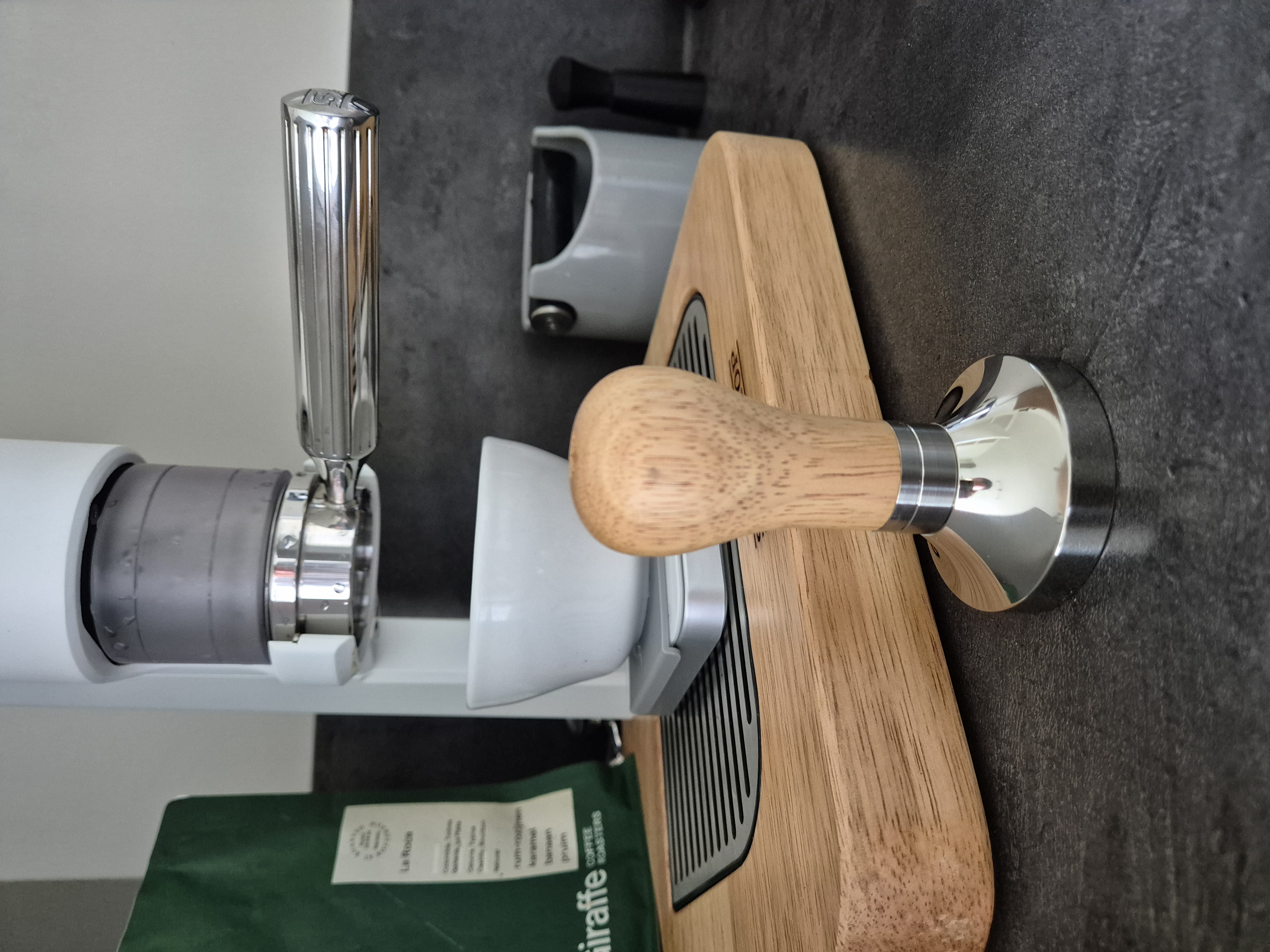 Na een beetje oefenen heb ik de Superkop snel onder controle gekregen. De workflow ervaar ik als prettig en de bediening is licht. Wat dat betreft geen vergelijk met de Robot. Dat laatste is even wennen: het is de bedoeling om juist geen flinke dosis kracht toe te voegen zoals bij manual levers, maar om gebruik te maken van de ratel. Het hele proces bestaat niet uit een enkele lange slag maar uit zes slagen. De eerste drie a vier slagen zijn de preinfusie en daarna hou je nog 2 a 3 slagen over voor de feitelijke extractie.