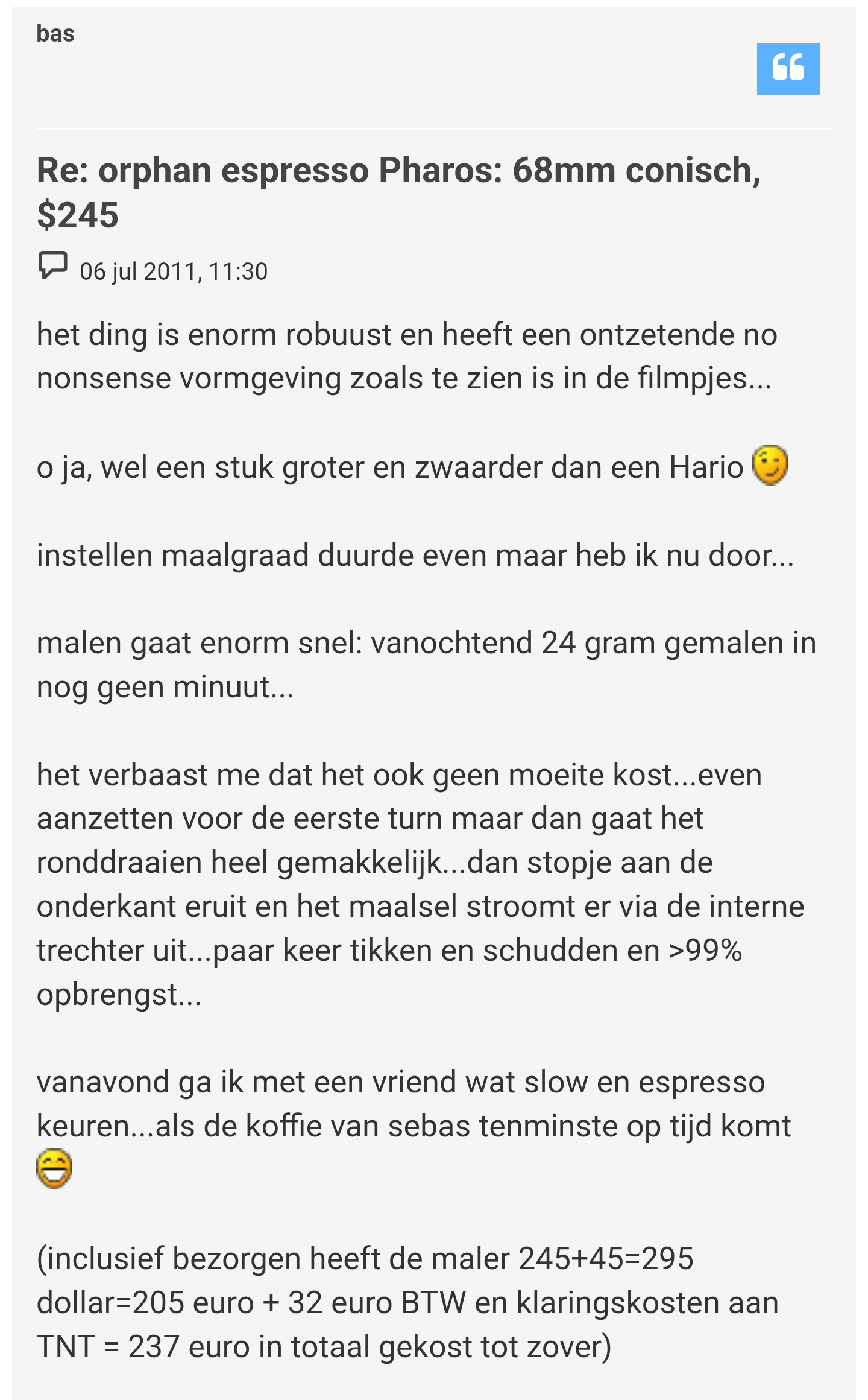 Re: Te koop: Pharos 68mm handmolen