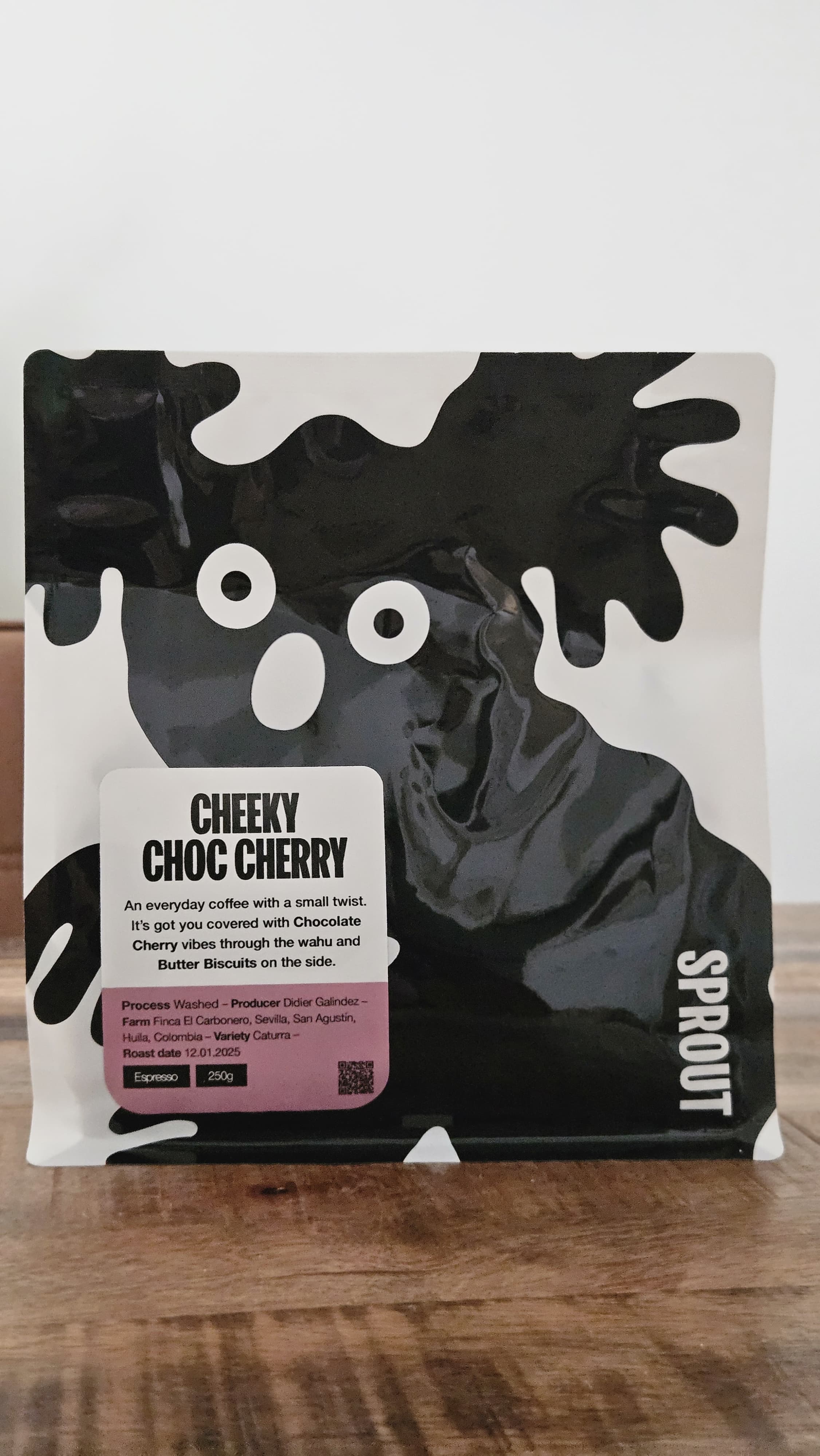 Cheeky Choc Cherry is daarentegen iets pittiger van smaak en ik proef de hinten die ze zelf benoemen ook goed terug. Ook in melk-dranken als cappuccino en Flat-White, mits stevig genoeg gezet (20 in, 38 uit) een lekkere smaak.