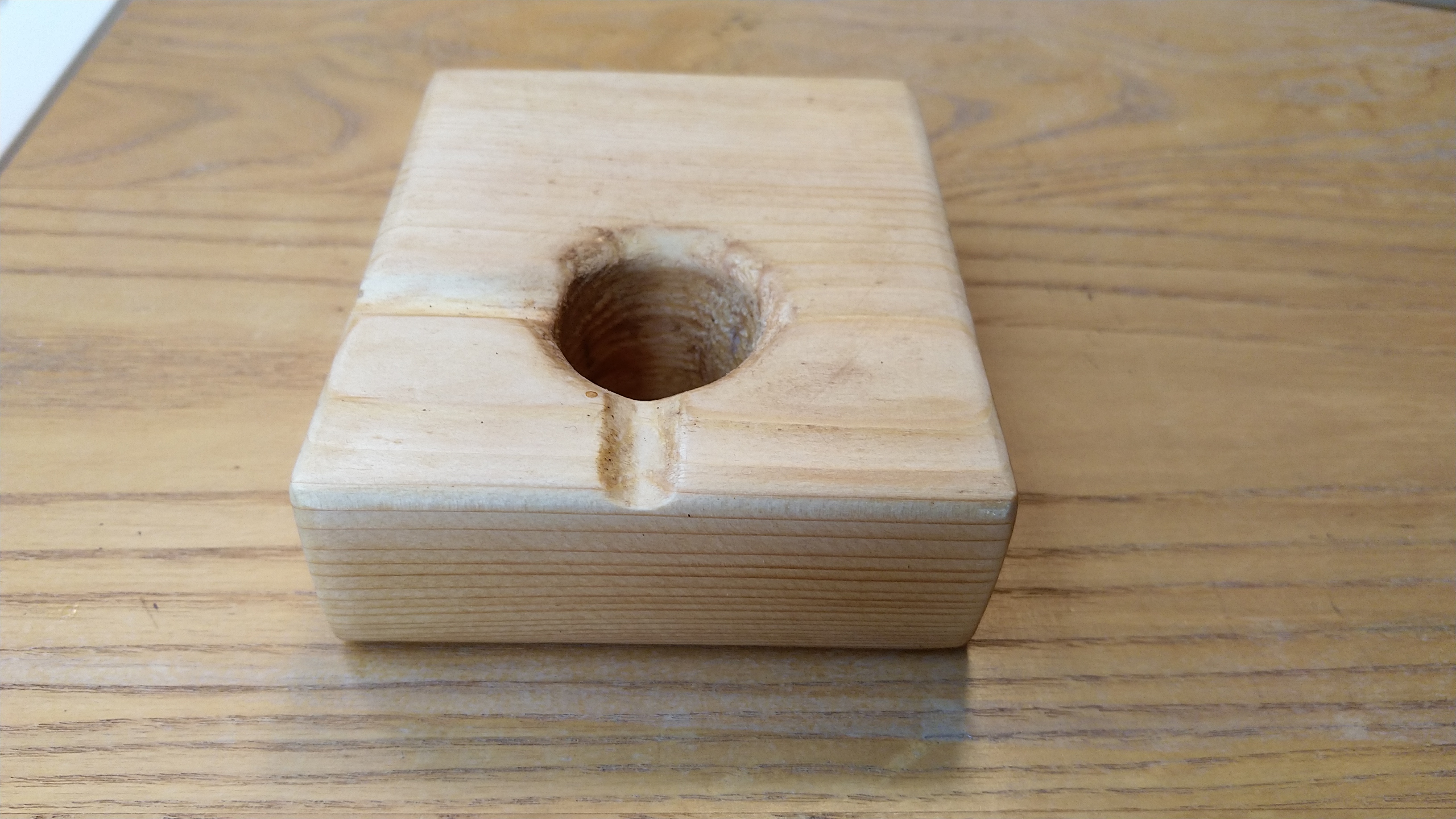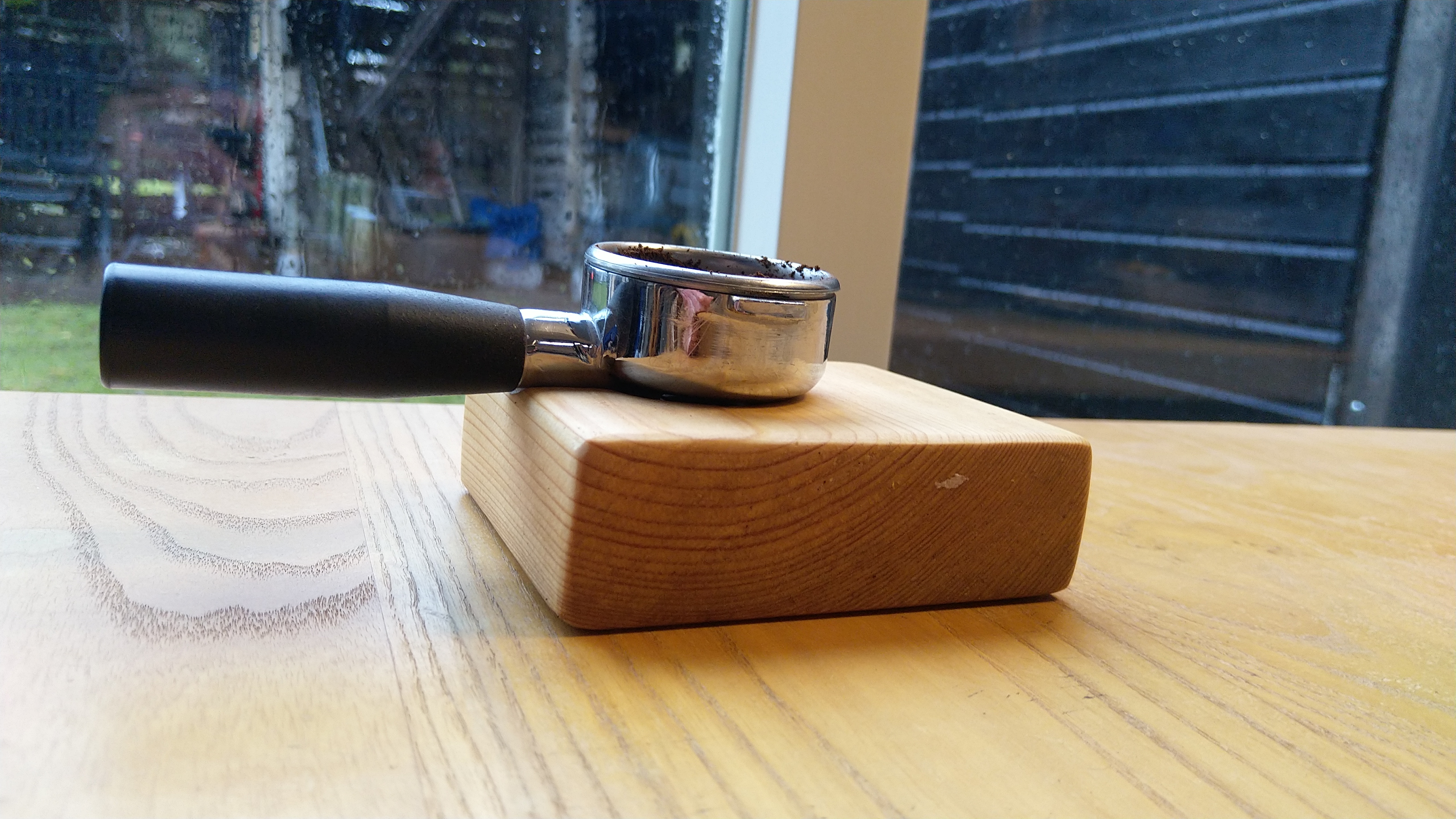 Afgelopen weken toch maar eens aan de slag gegaan met een houten tamper station. Verleden jaar had ik er één gemaakt van multiplex en blokjes hout om eens een eerst stap te zetten. Nu ben ik met een balkje van vurenhout aan de slag gegaan. Aangezien ik de uitkoop tuutjes niet onder de filterdrager heb, heb ik gekozen voor een kleiner gat. Wel heb ik gekozen voor twee sleuven voor de handel van de drager. Één aan de voorkant en één aan de zijkant. De eerste is voor als de tamper gevuld wordt, de tweede als hij staat uit te lekken na het zetten.