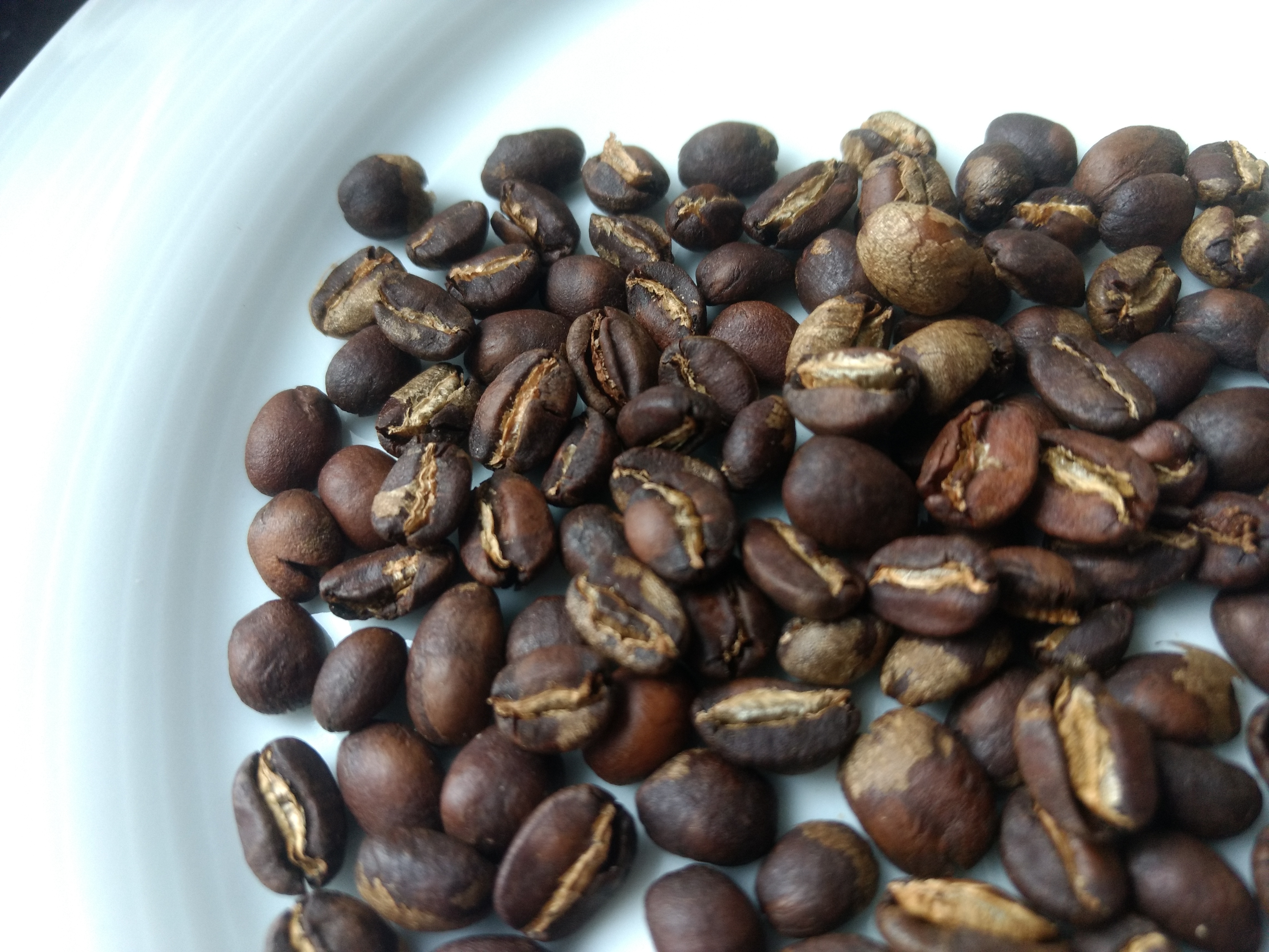 De algehele textuur van de bonen indiceren een snelle , intense branding wat zou kunnen betekenen dat bonen wat geblakerd zijn van buiten maar nog behoorlijk licht van binnen.