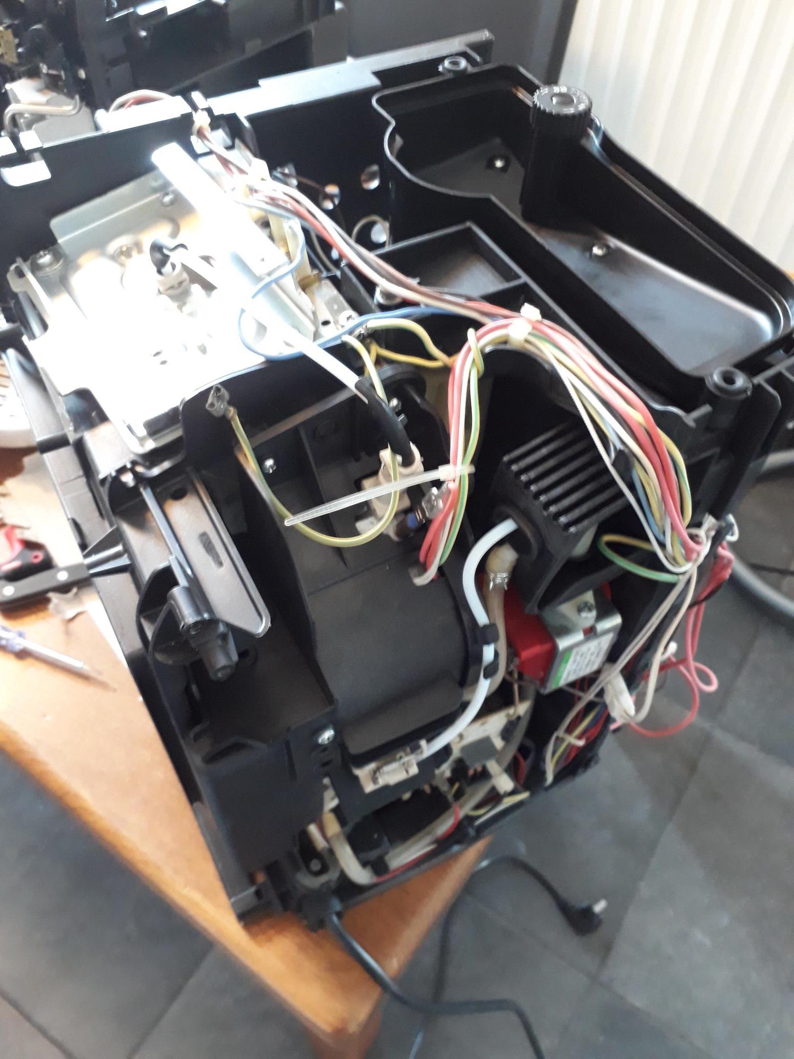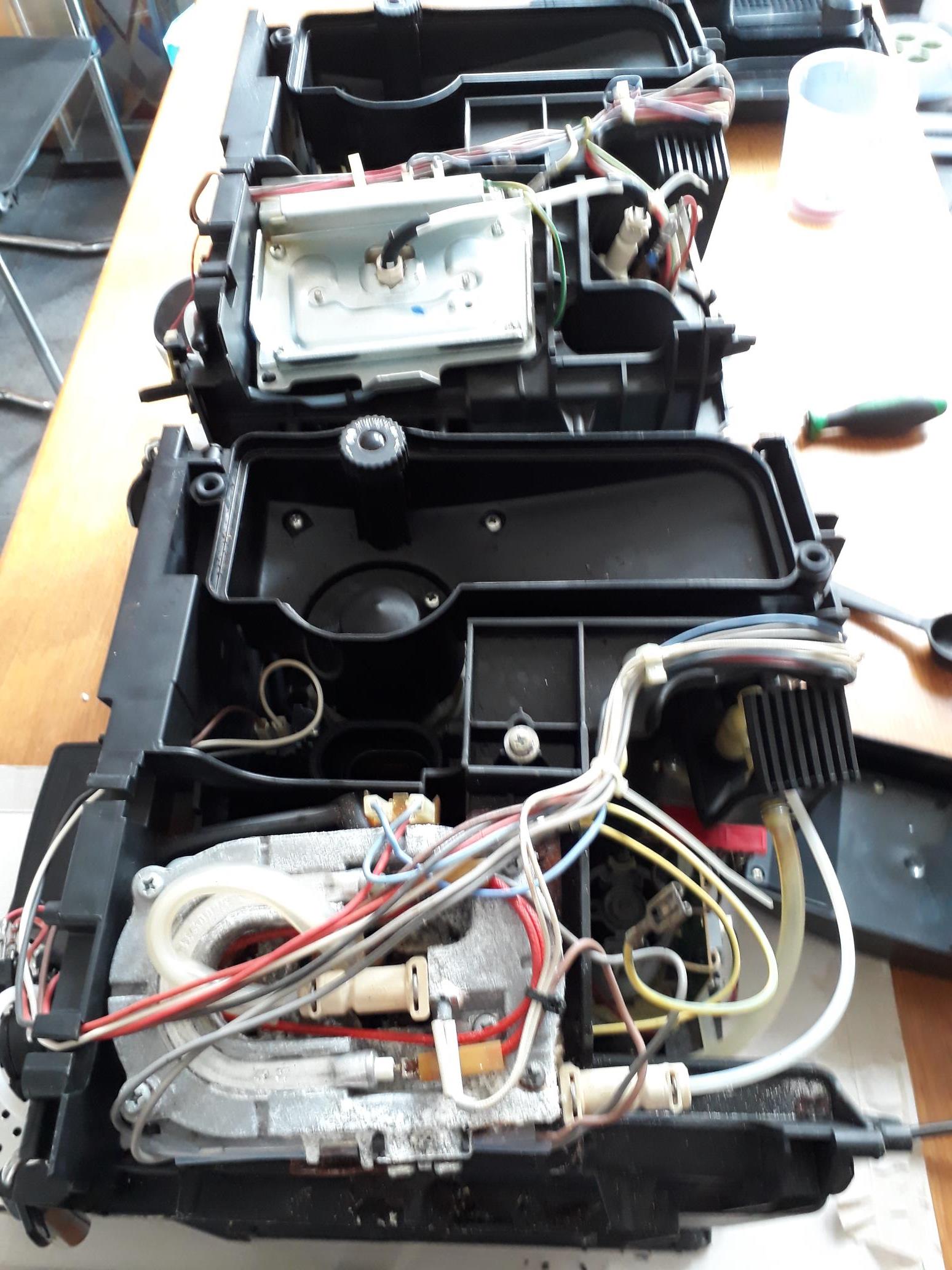 Het probleem lijkt in de knop voor de bonenhoeveelheid of hardware van de machine te zitten. Achter het display zit een printplaat waar alle knoppen aan zitten en in de machine zit een printplaat.