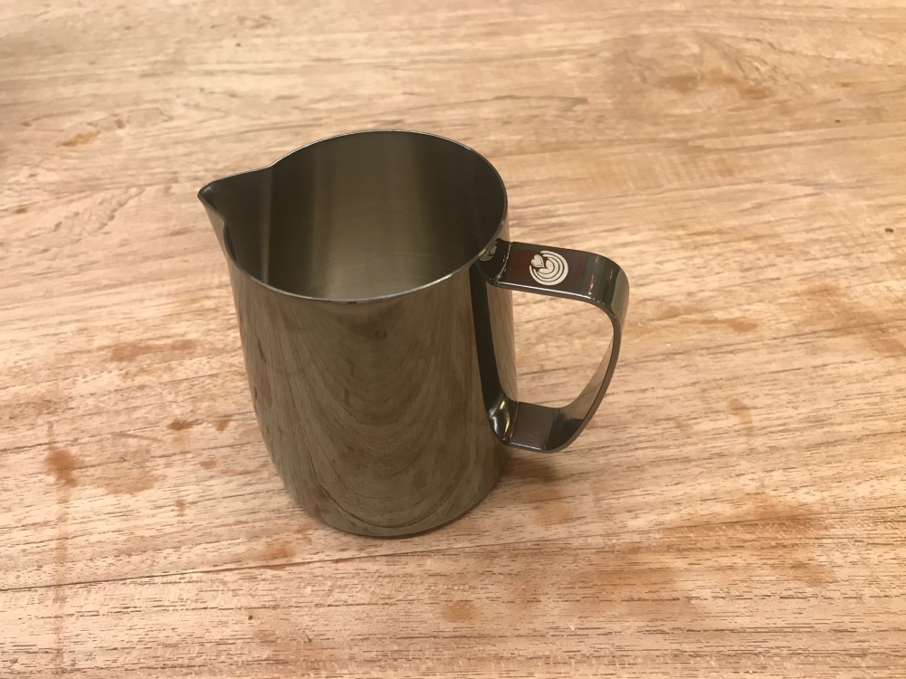 Wegens een cosmetisch garantiegevalletje heb ik een nieuwe, ongebruikte melk pitcher van Barista Swag over.