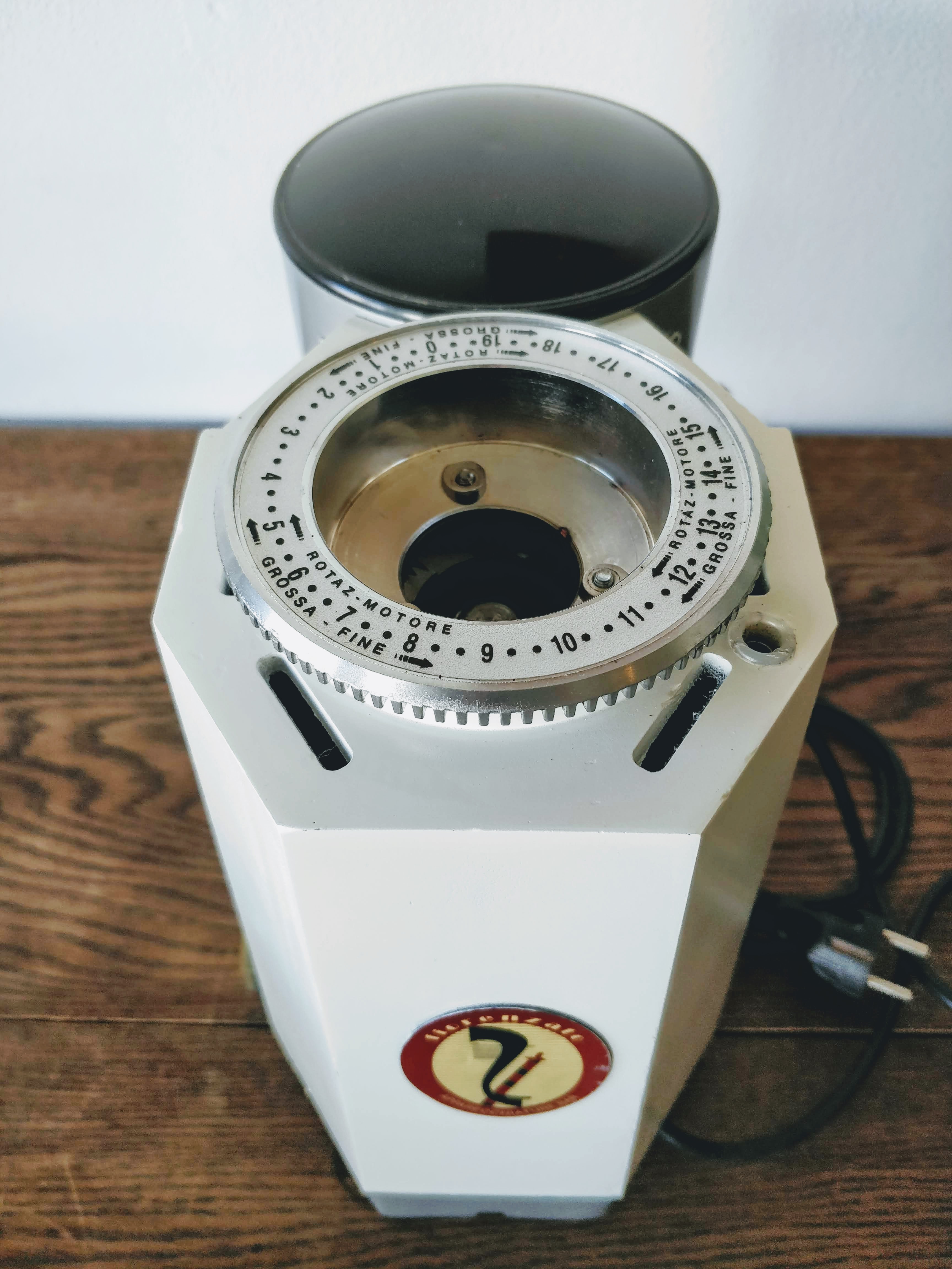 Even verder op deze vraagstaart: net zo een oude horeca molen in huis gehaald, dezelfde Fiorenzato T80 in het zwart, maar gelabeld merk 'Wega'. Type plaatje zegt wel Fiorenzato T80.