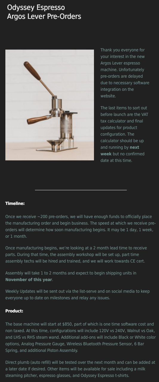 Re: ARGOS van Odyssey Espresso